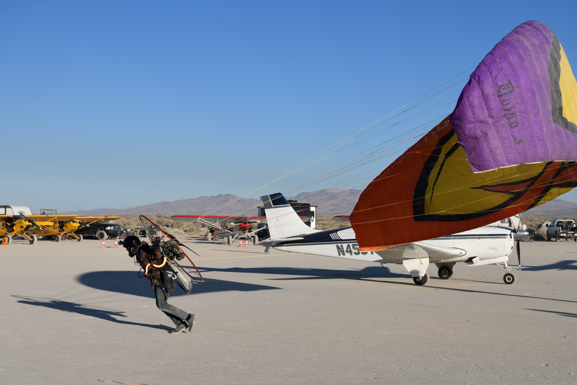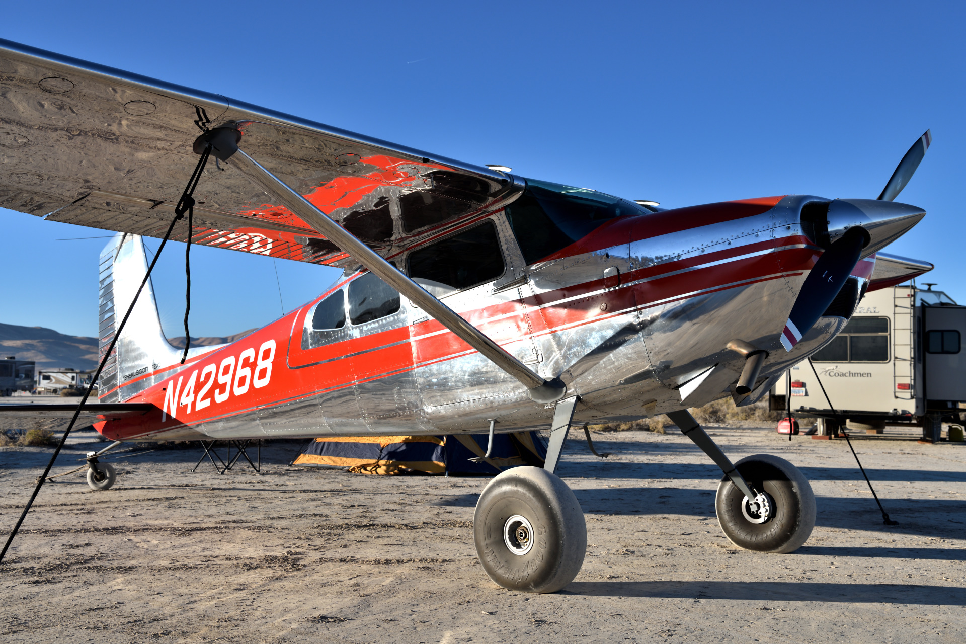 November 2018 Dieter Betz and I visited the annual High Sierra Flyin in Navada. One big dry lake bed, two parallel runways, three days of fun and 400+ planes of all sorts.