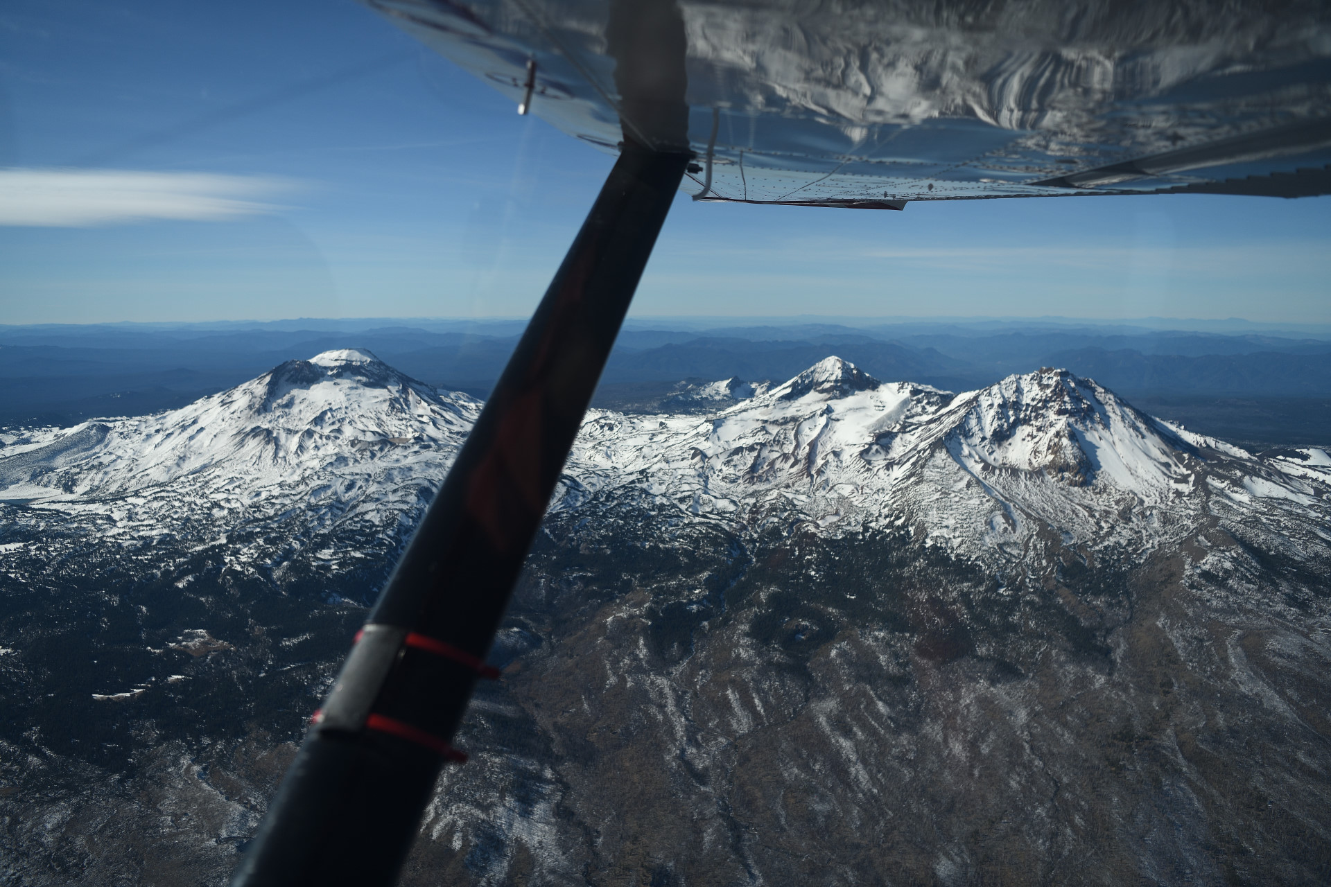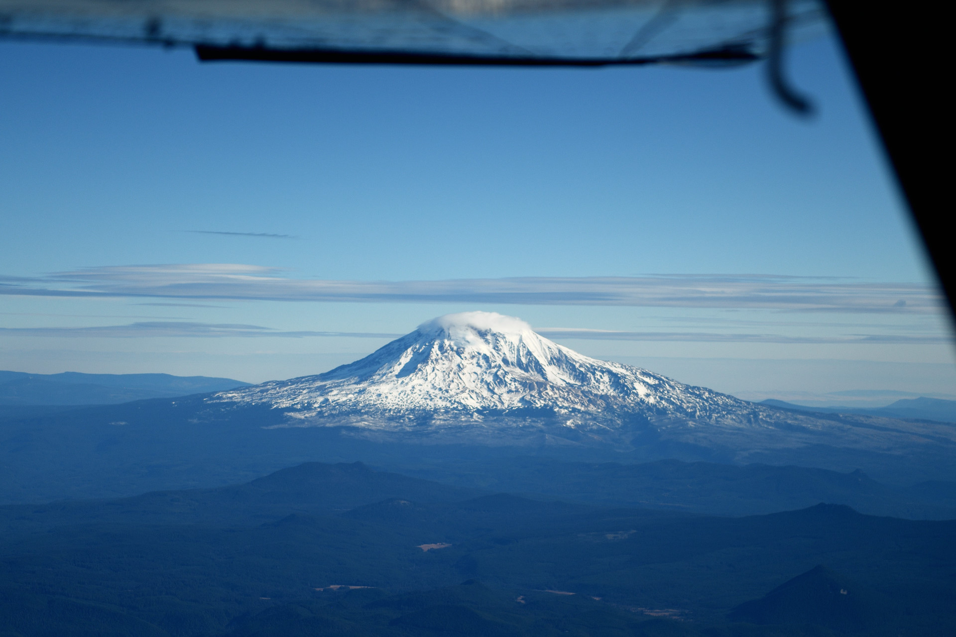 Flying down the west coast of US, I used all the major volcanoes as waypoints. Mt. Baker, Mt. Rainier, Mt. St. Helens, Mt. Adams, Mt. Hood, Mt. Jefferson, Three Sisters, Crater Lake, Mt. Shasta and Lassen Peak.