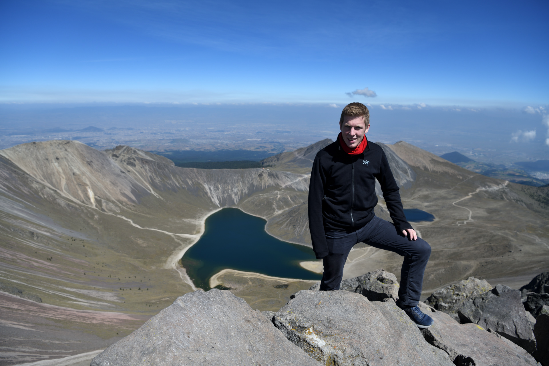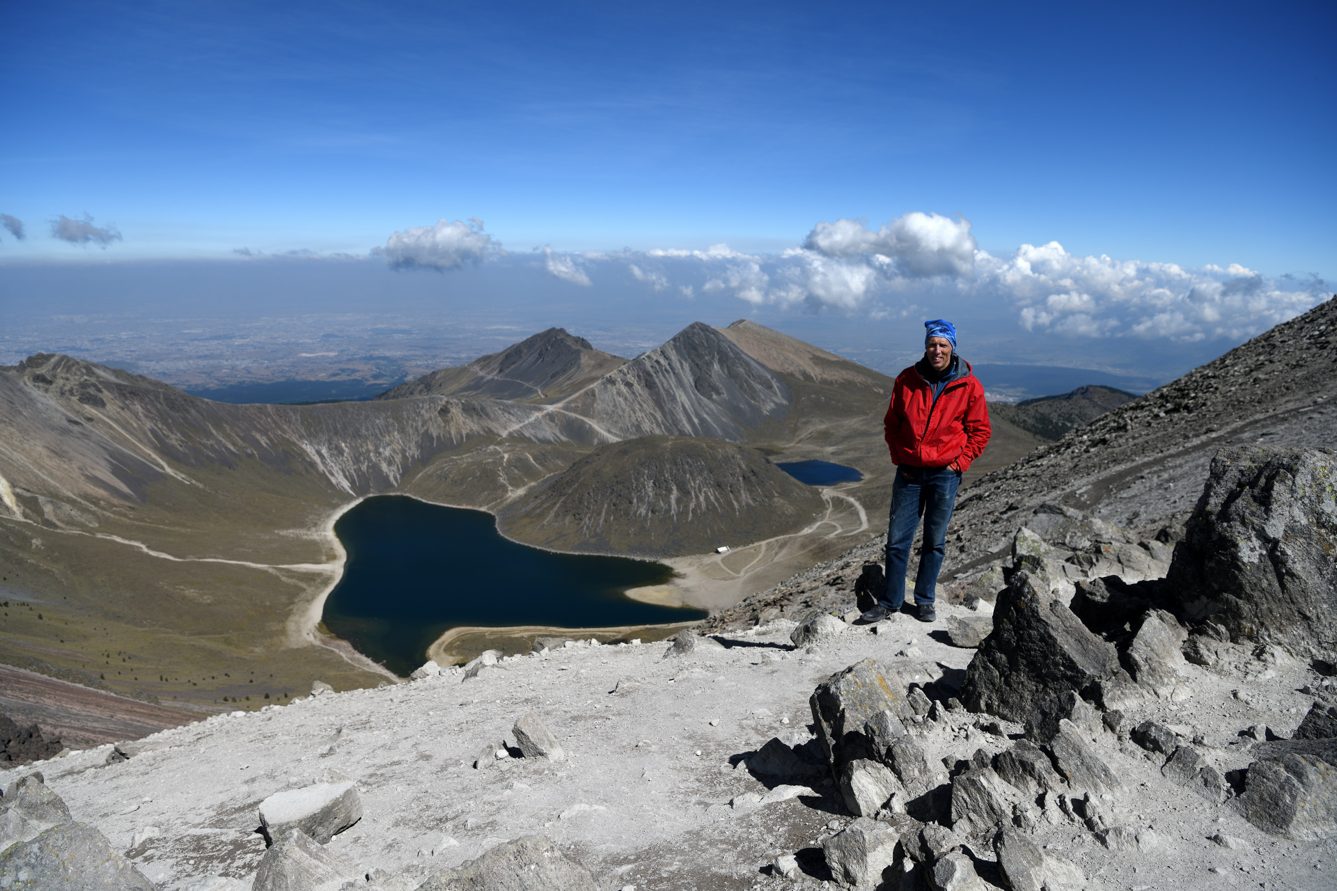 My son and I climbed Nevado de Toluca on our first day in Mexico. From Mexico City we rented a small car and drove up to the parking lot from where most climbs start. The volcano is very easy to climb, and also very stunning. Huge crater with two lakes and a new dome inside. The summit is on the far rim.
