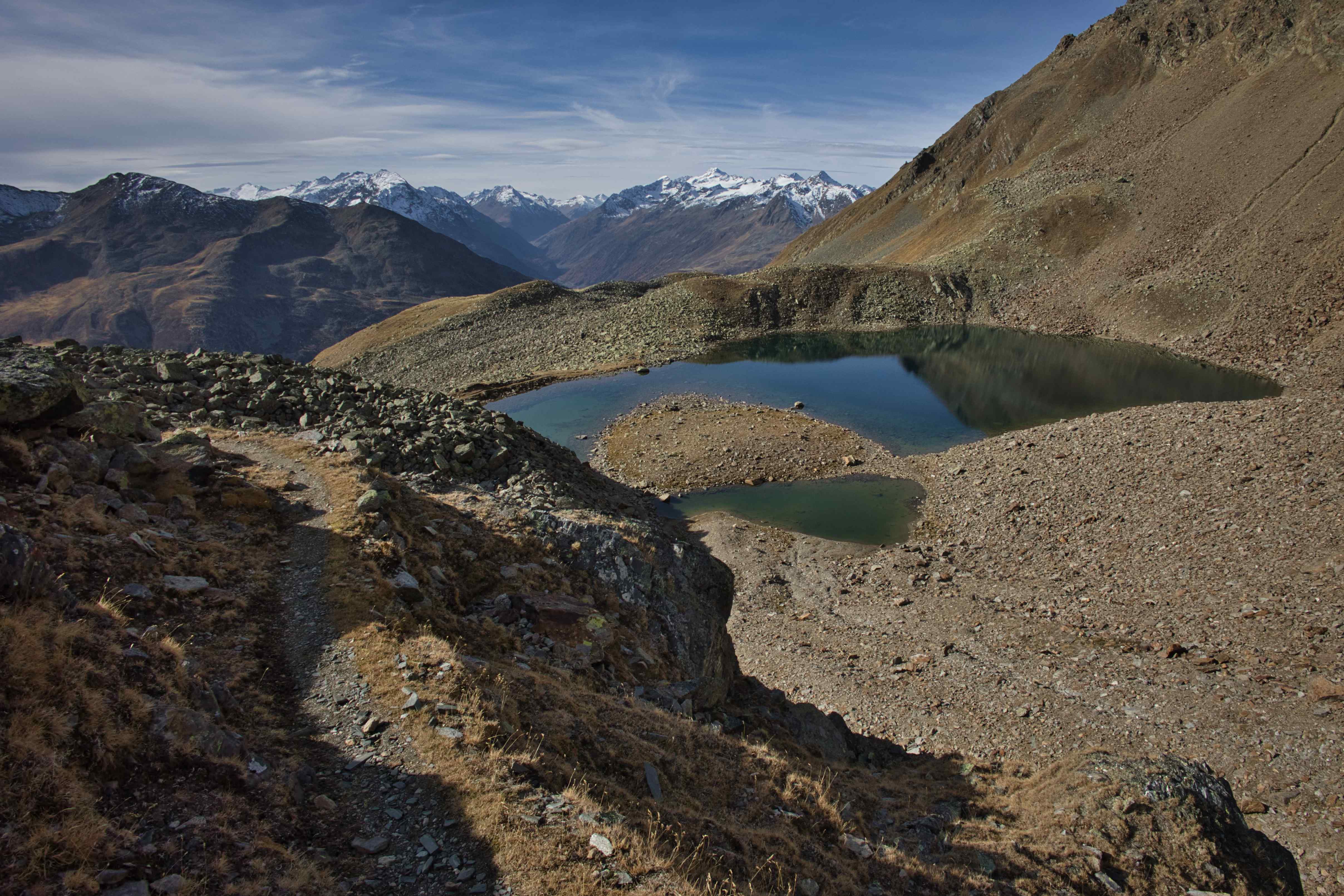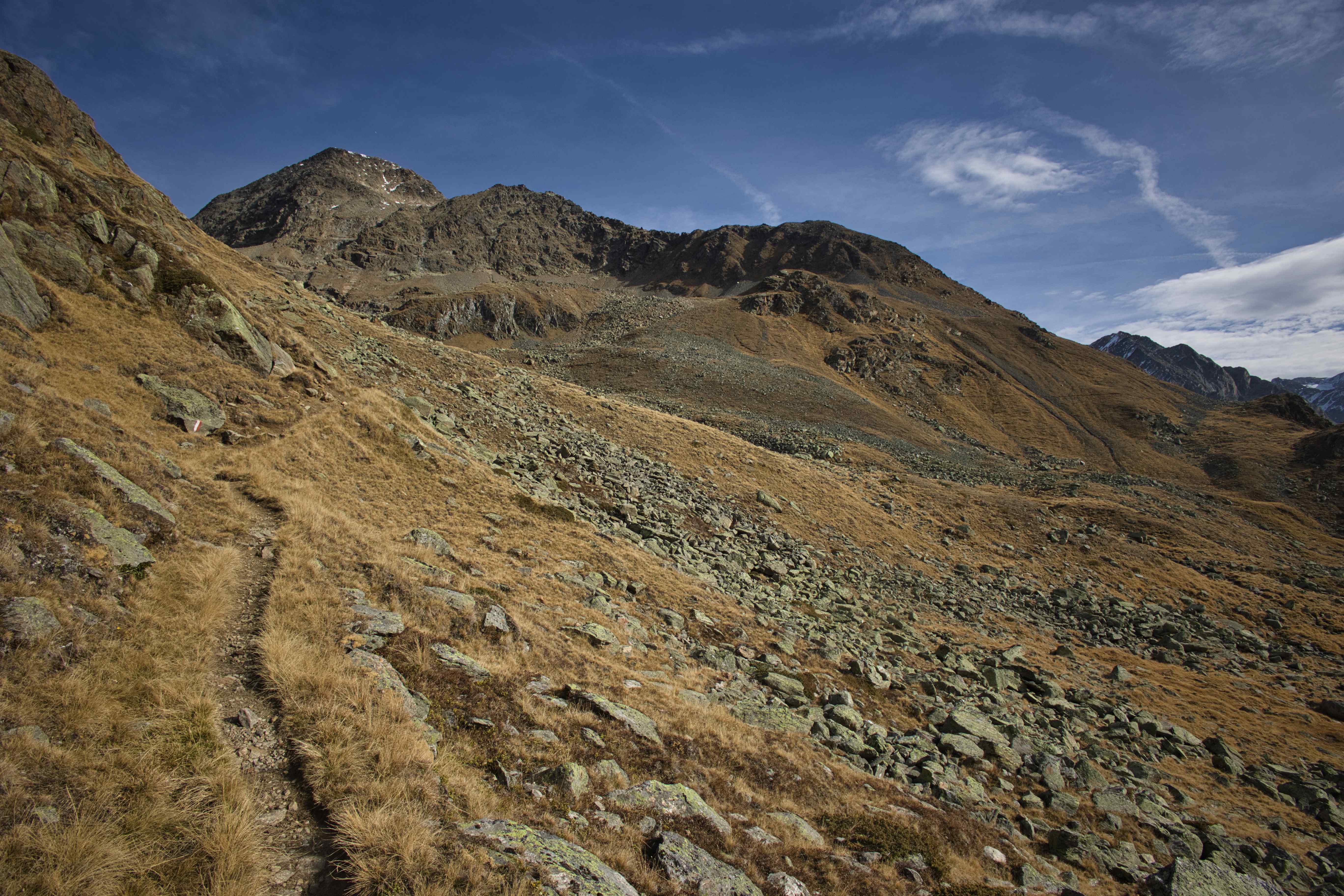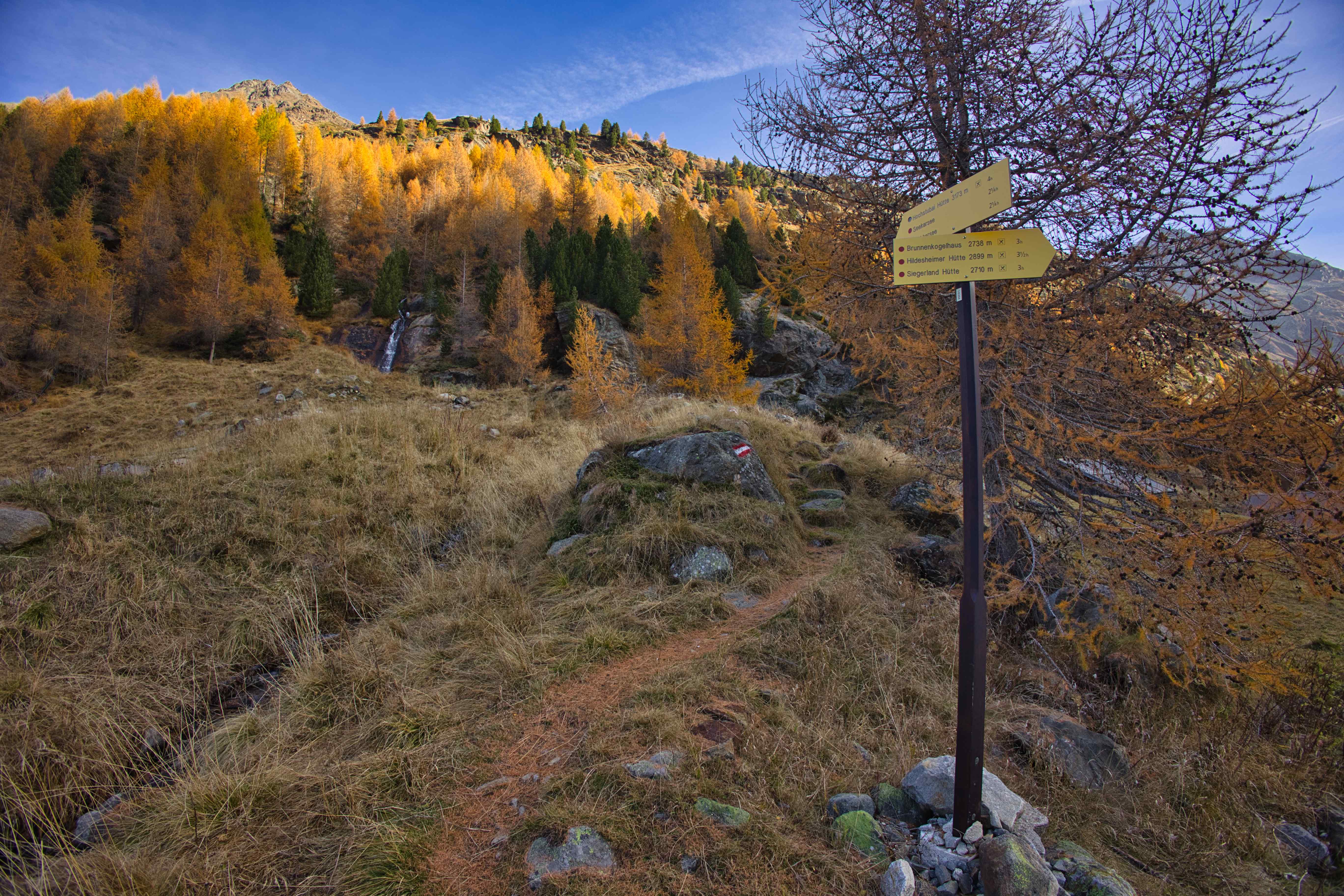 Third climb – Last climb of the trip went around Hochstubaihütte, the third highest hut in Austria at 3,174 meters. My plan was to drive to the trailhead from where the hike would be just 1,200 meters up and down over 11 kilometers. But the road to the trailhead was closed 4 kilometers away, so my hike ended up being 1,800 meters up and down over 21 kilometers. Yet another day with perfect weather, no wind and only few clouds.