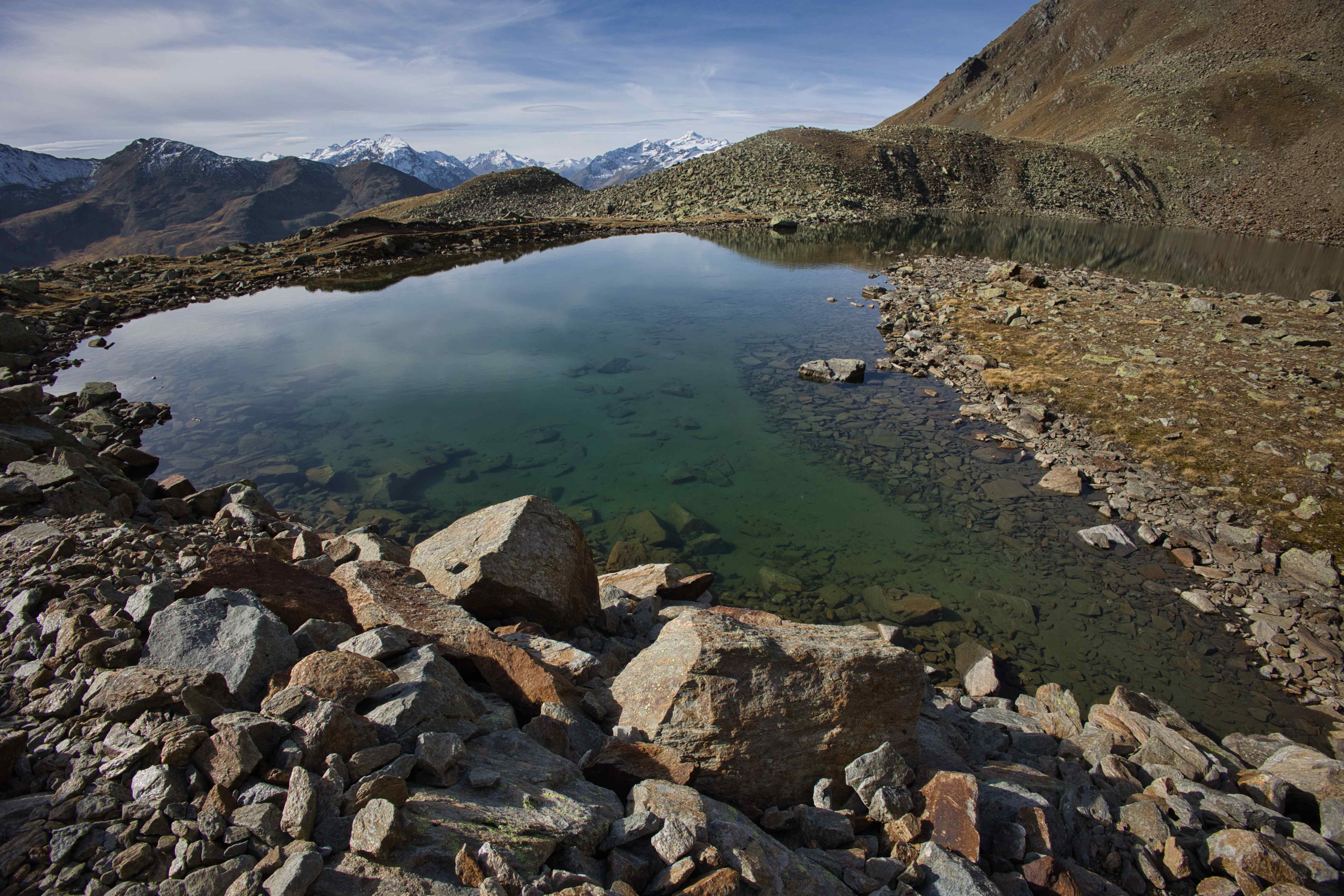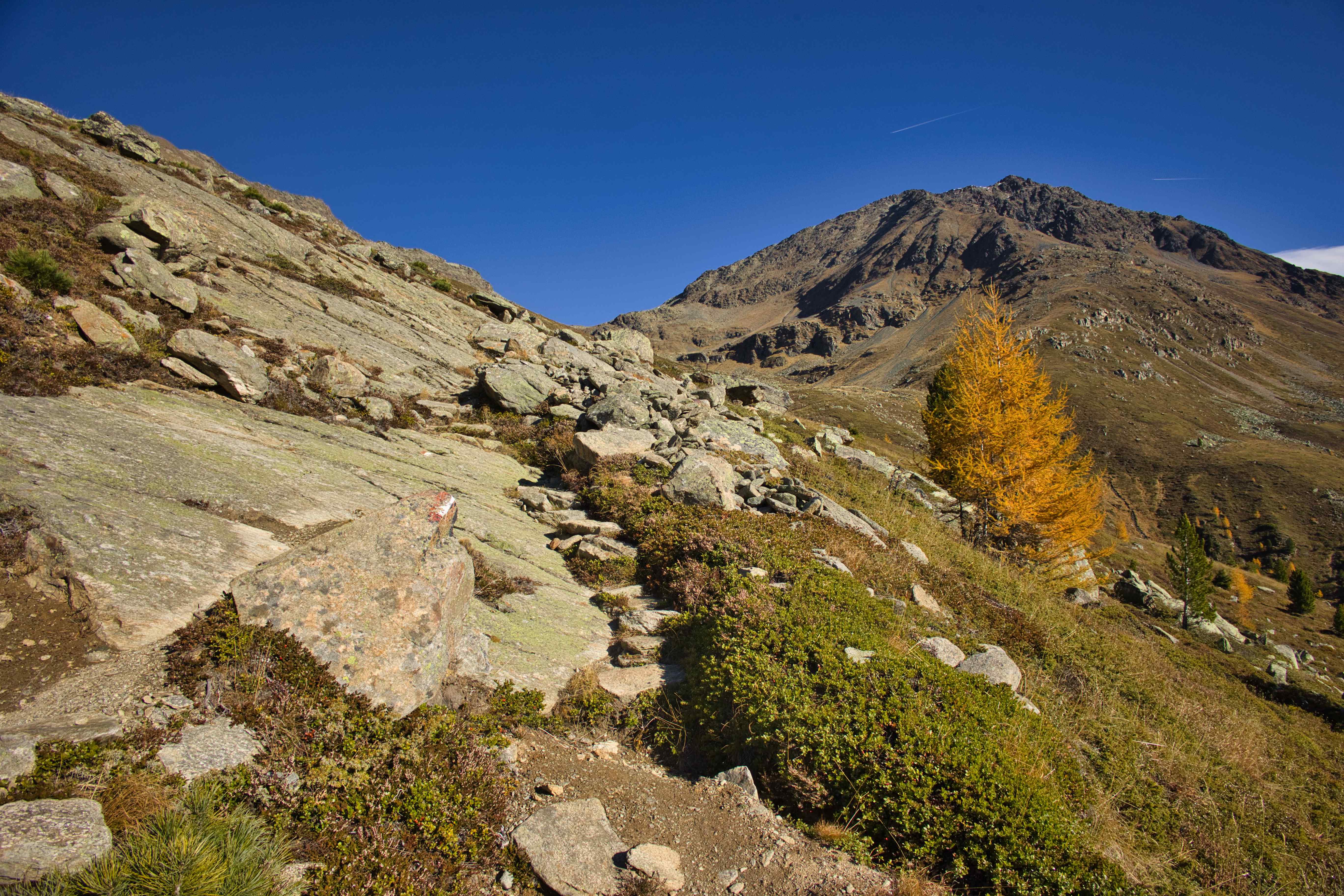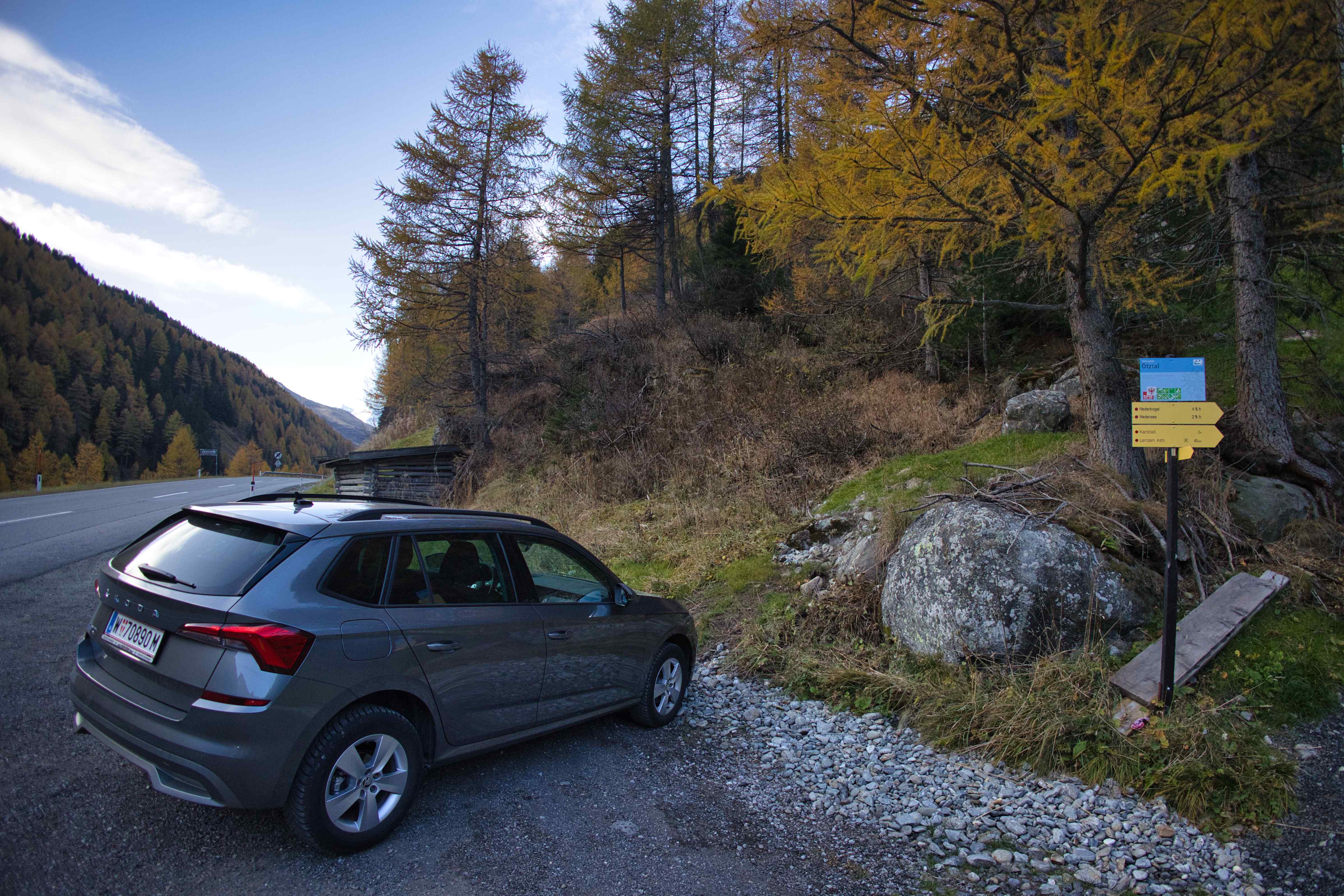 Third climb – Last climb of the trip went around Hochstubaihütte, the third highest hut in Austria at 3,174 meters. My plan was to drive to the trailhead from where the hike would be just 1,200 meters up and down over 11 kilometers. But the road to the trailhead was closed 4 kilometers away, so my hike ended up being 1,800 meters up and down over 21 kilometers. Yet another day with perfect weather, no wind and only few clouds.