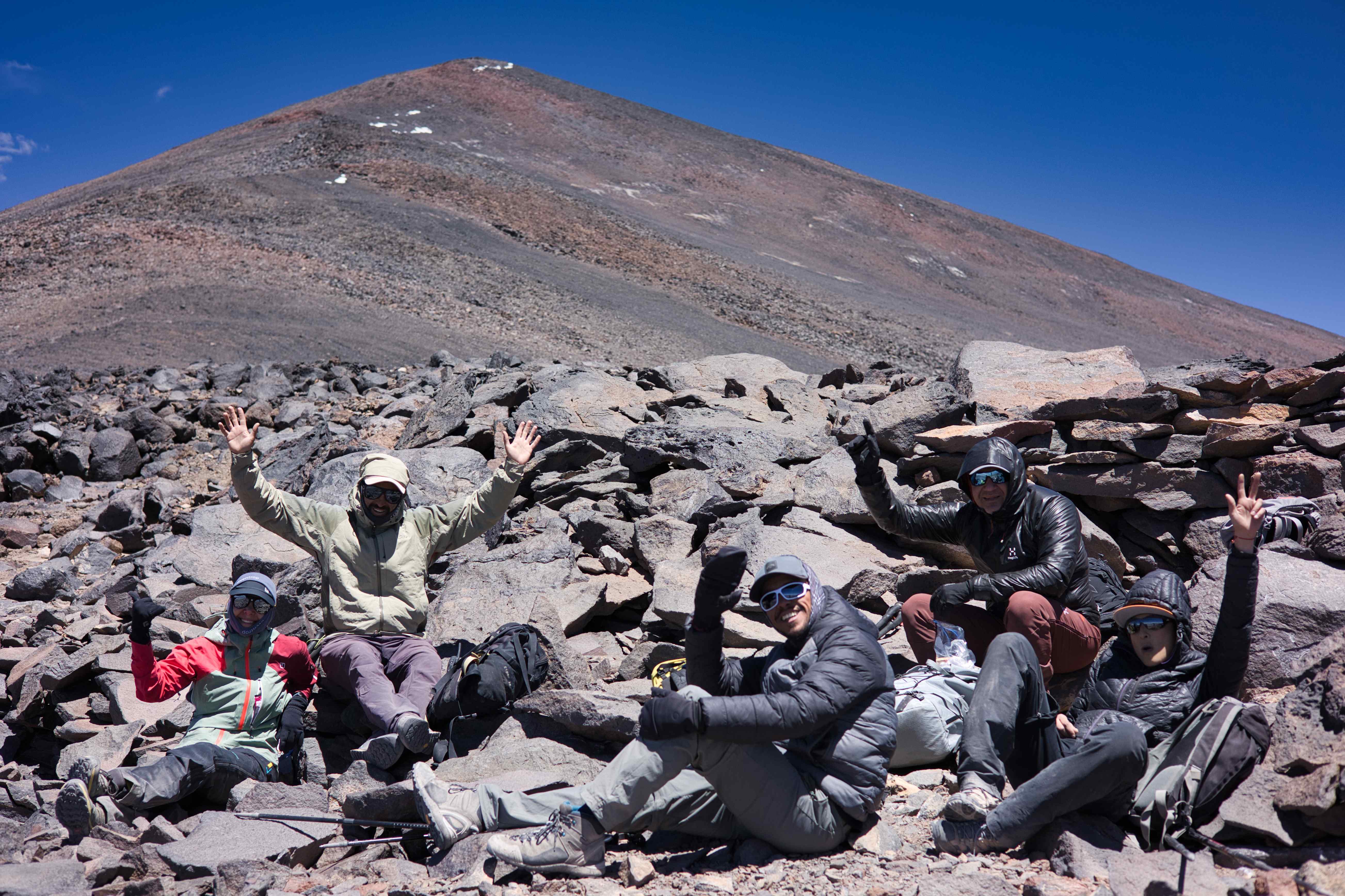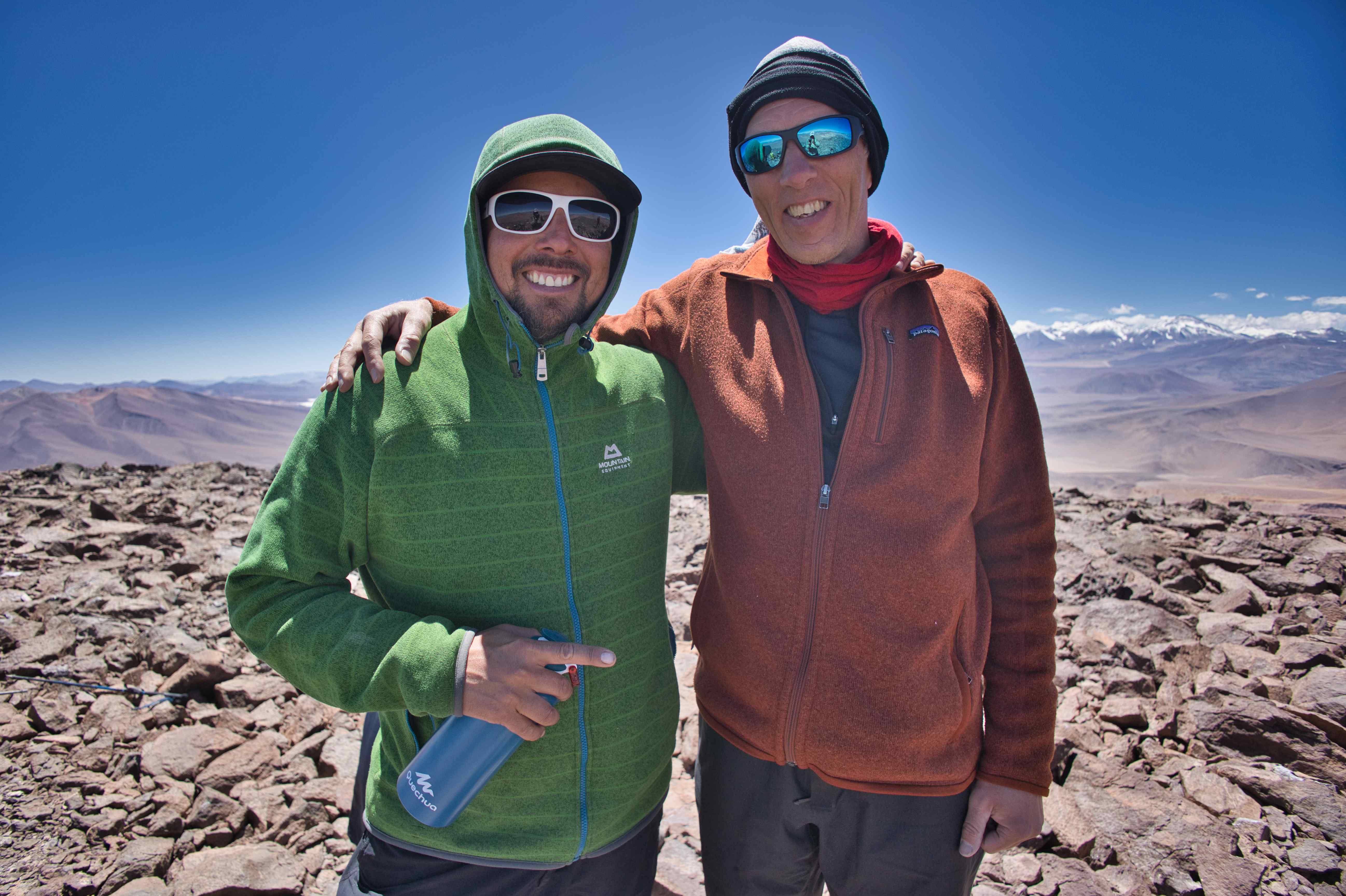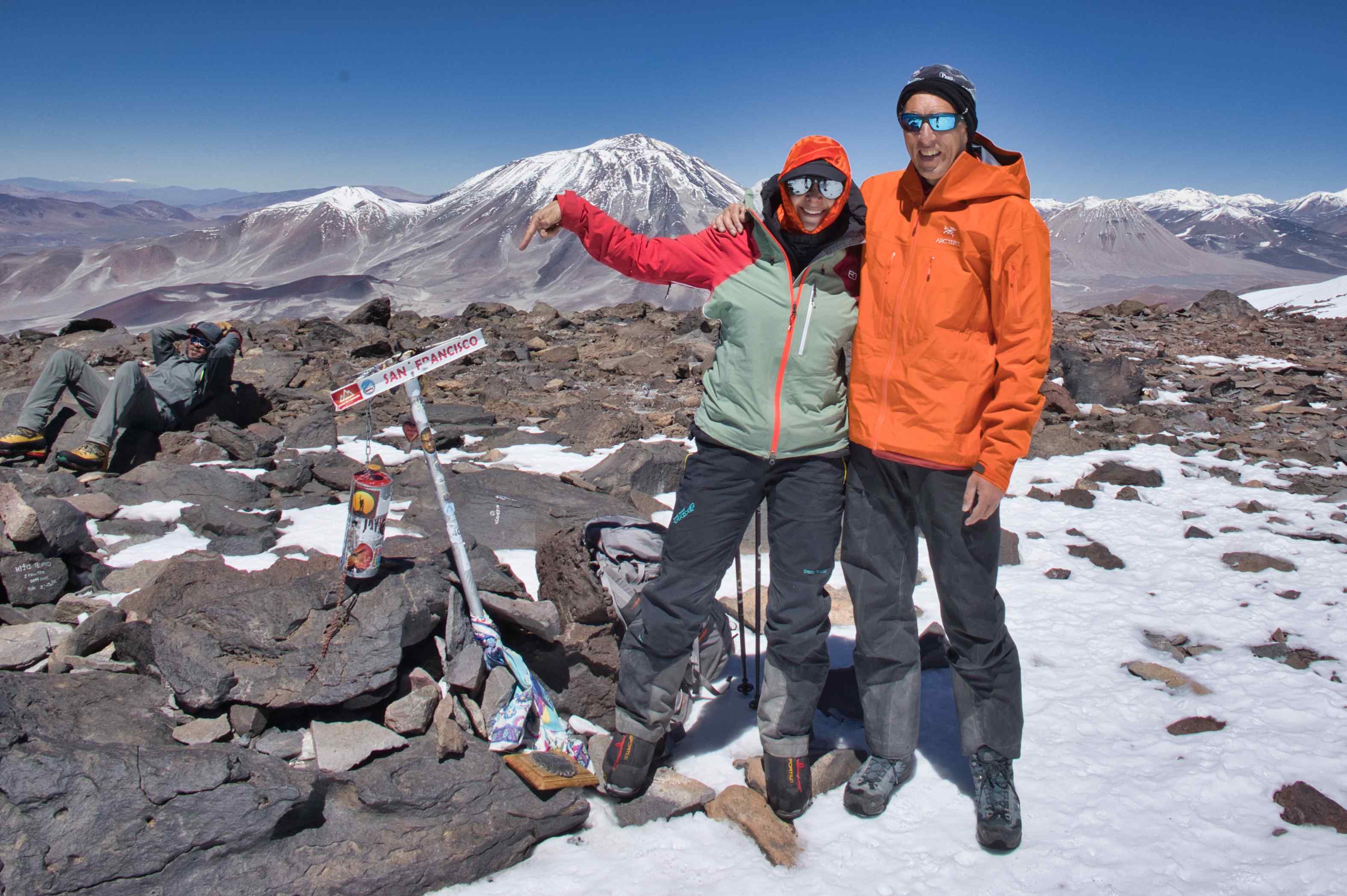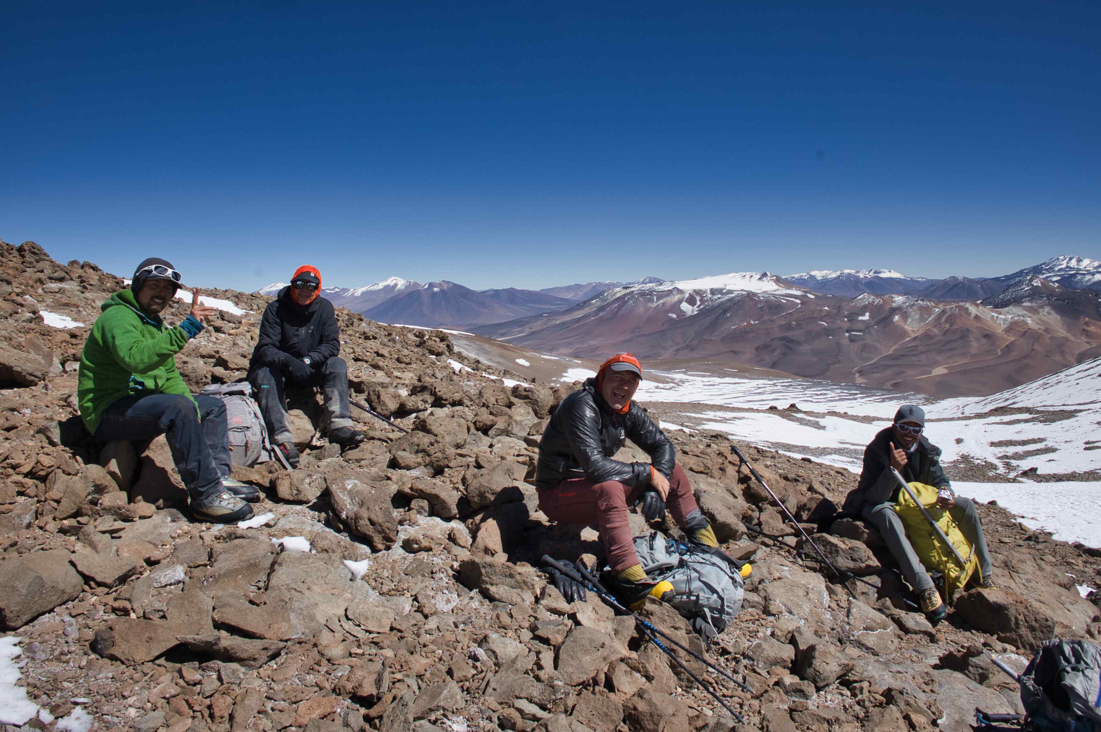 During the trip we did four acclimatization hikes. One of these were to the summit of 6,040 meters / 19,816 feet Volcán San Francisco.
