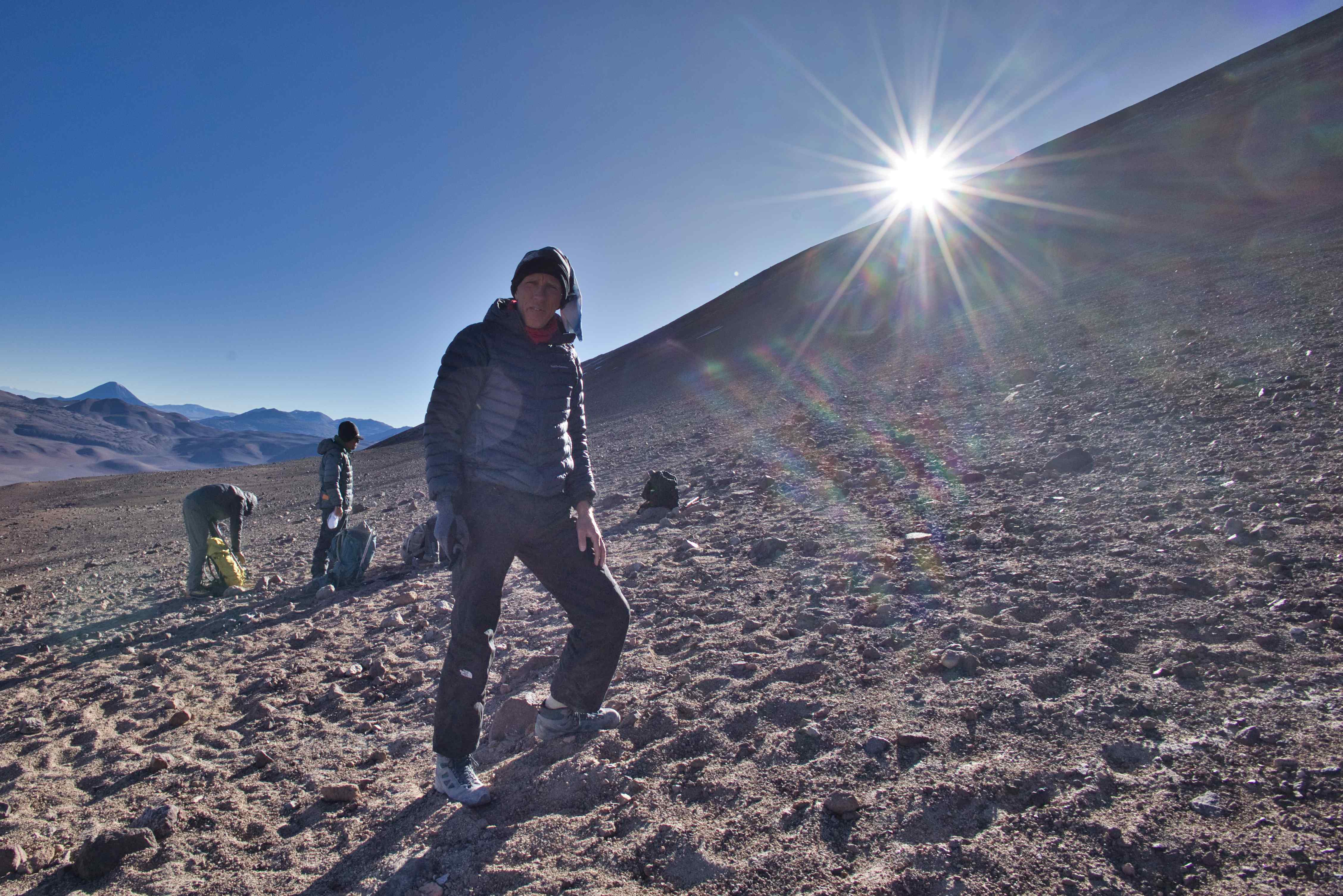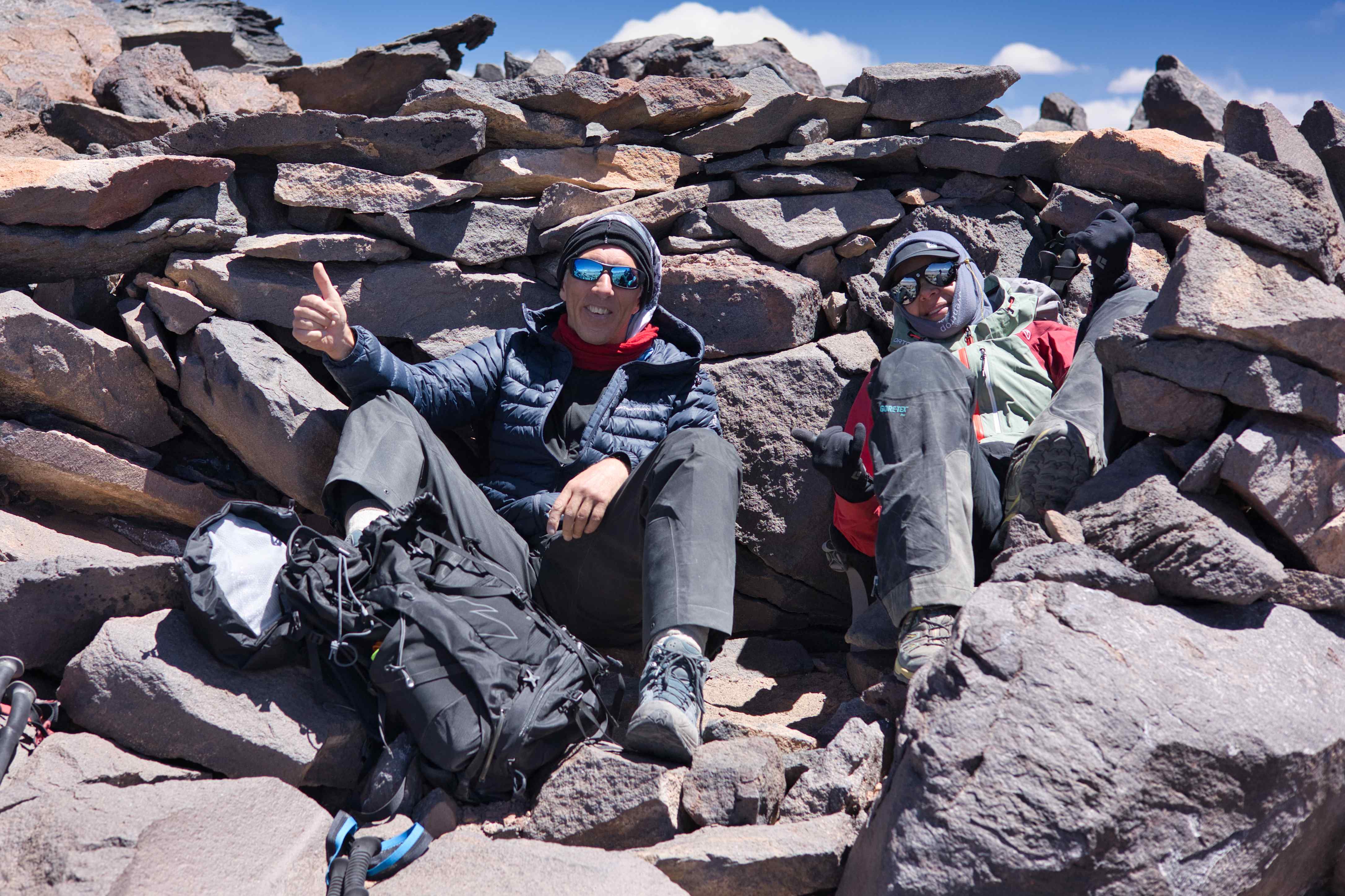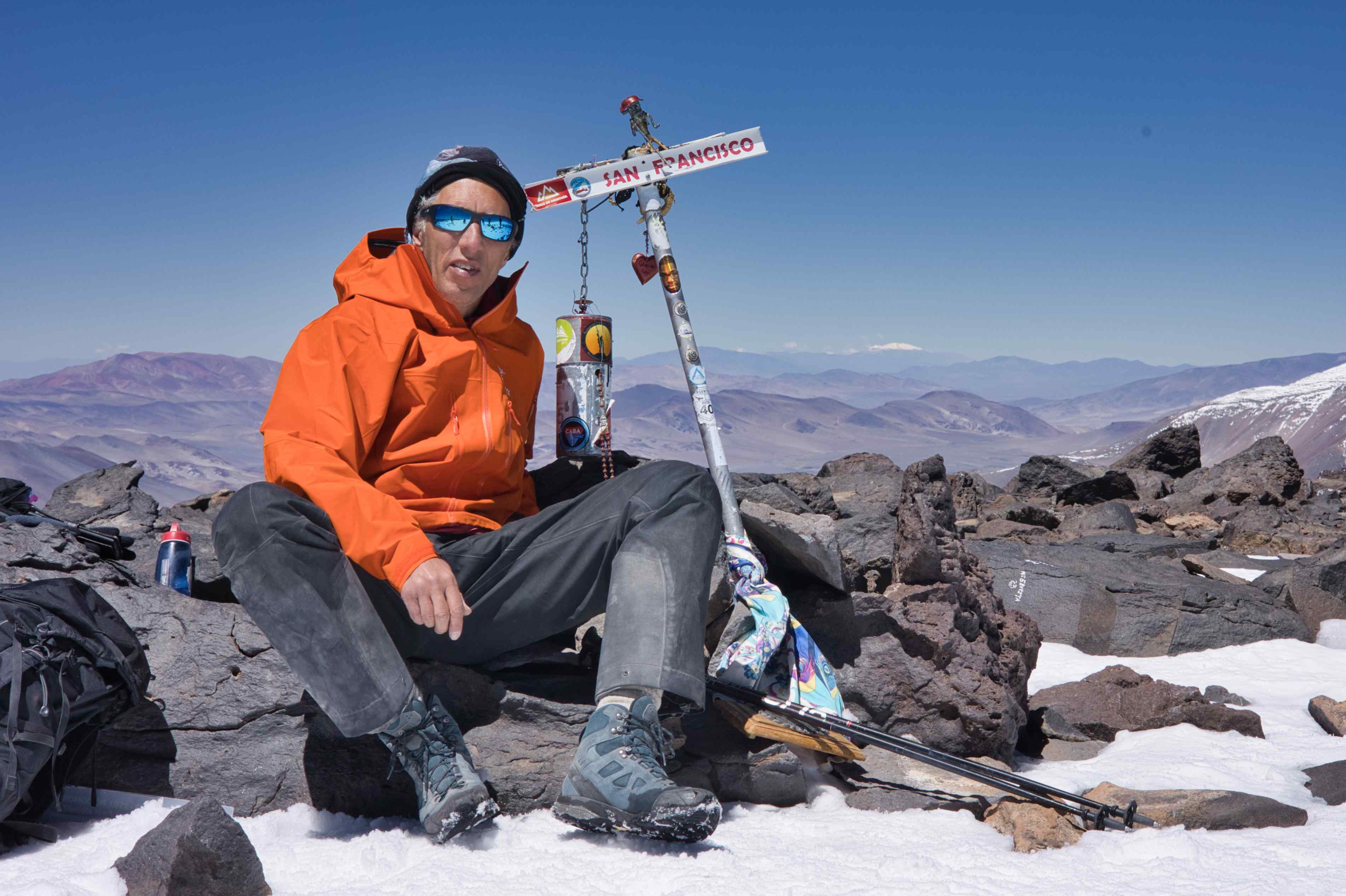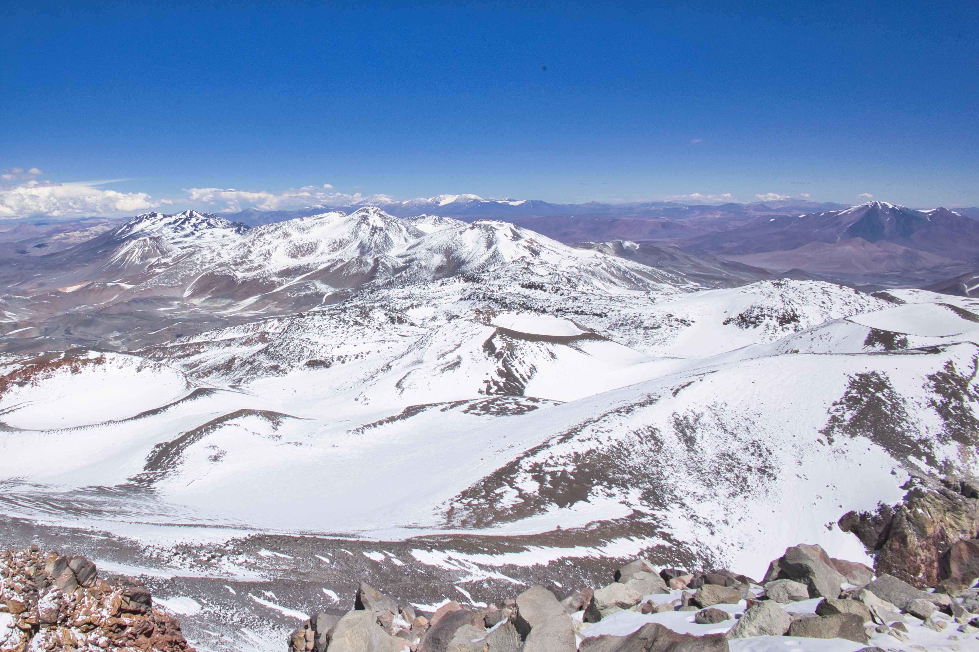 During the trip we did four acclimatization hikes. One of these were to the summit of 6,040 meters / 19,816 feet Volcán San Francisco.