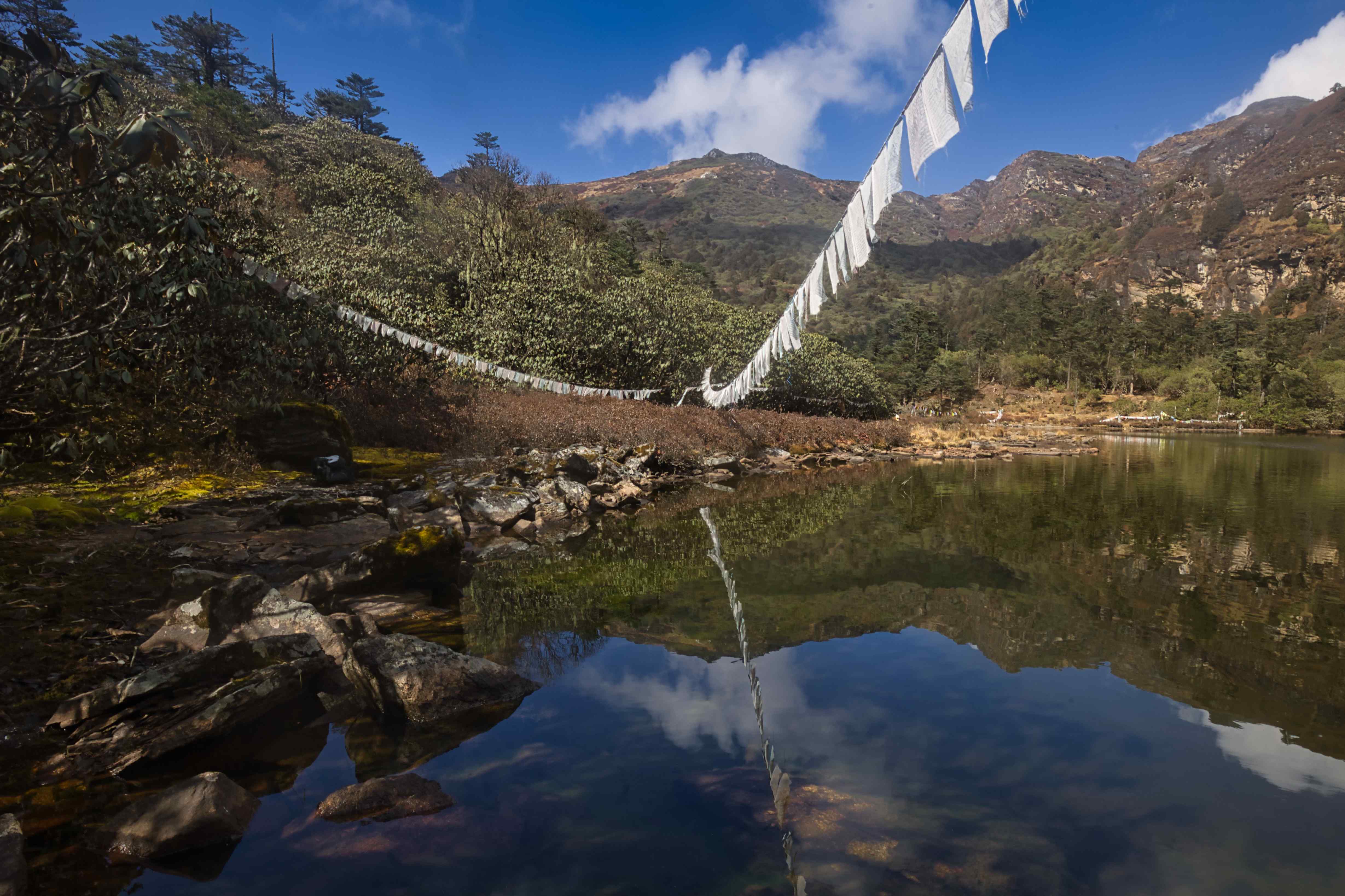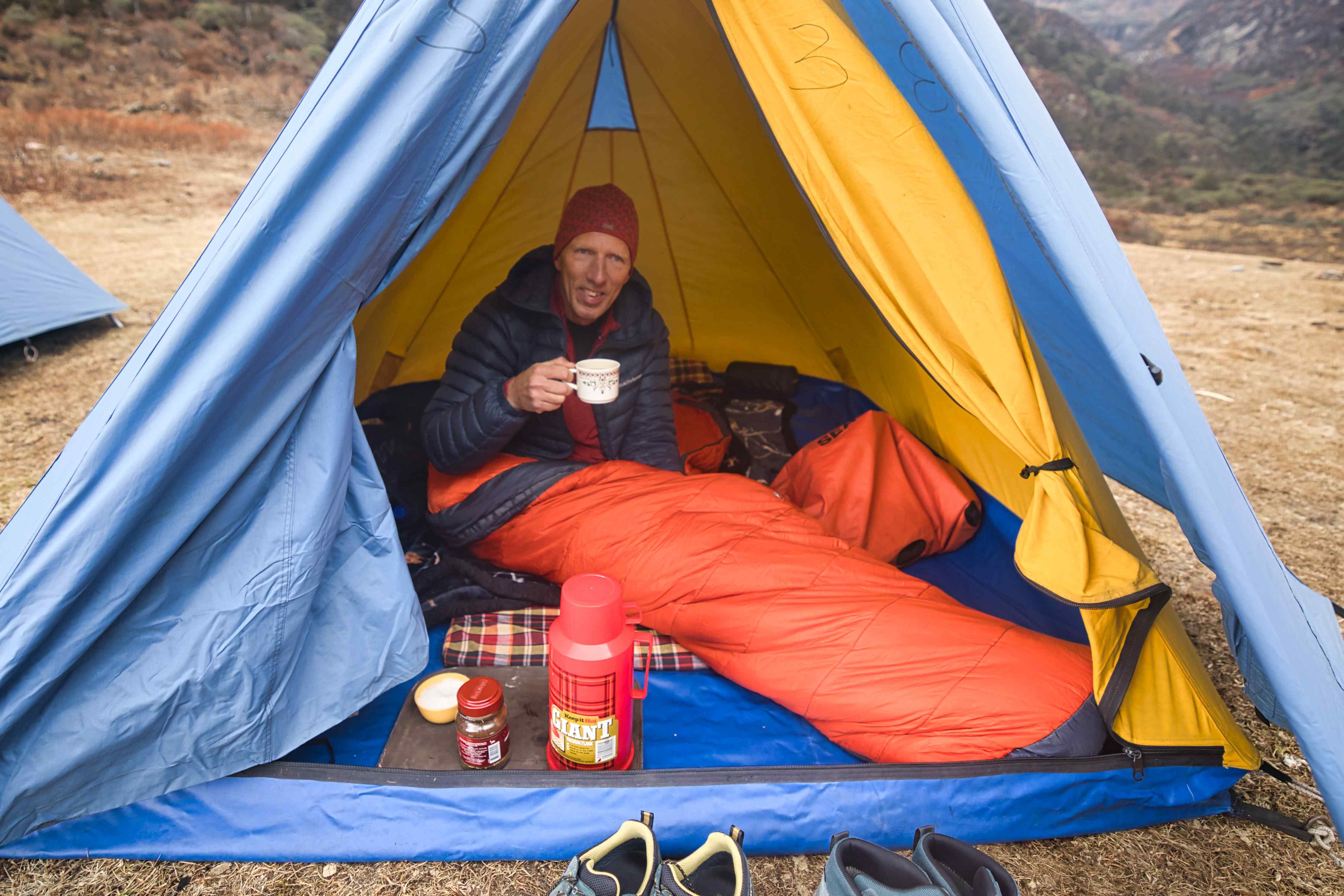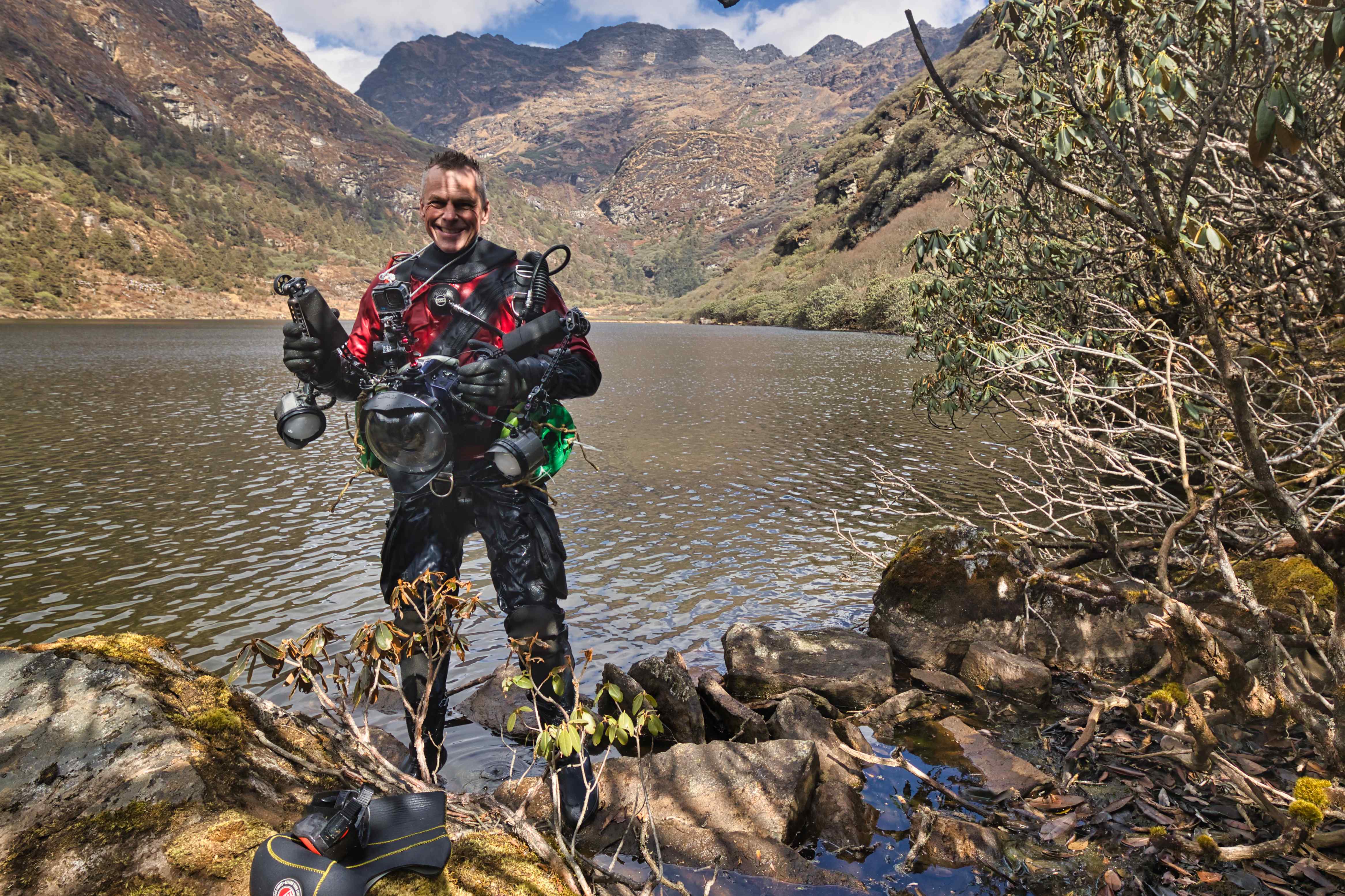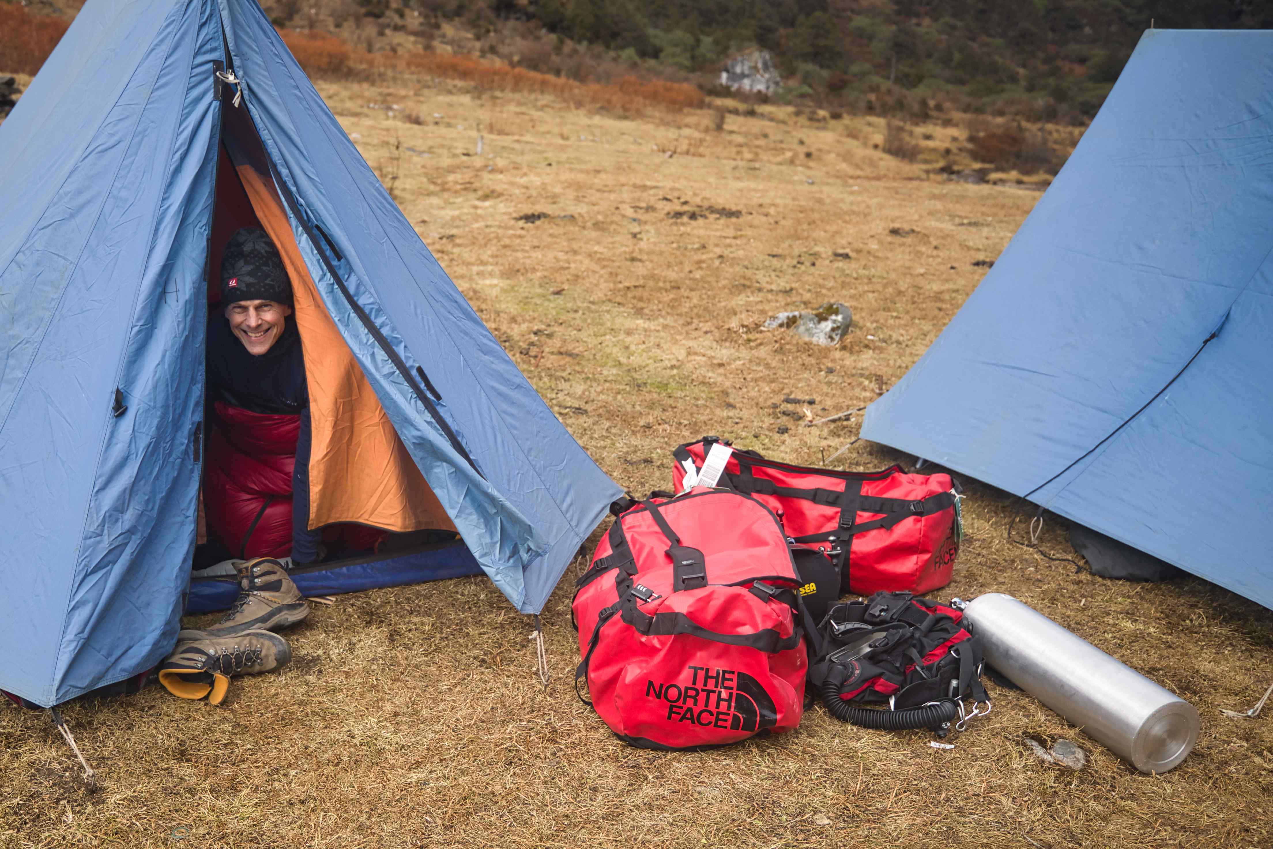 On the second and the third day we hiked up to Jigmelang Tsho Lake at 3,850 meters above sea level. And further, I hiked up to 4,100 meters above sea level while Frode relaxed in the tents that our guides had set up for us. Next morning Frode went diving before we hiked back. The hike up and down was really beautiful.