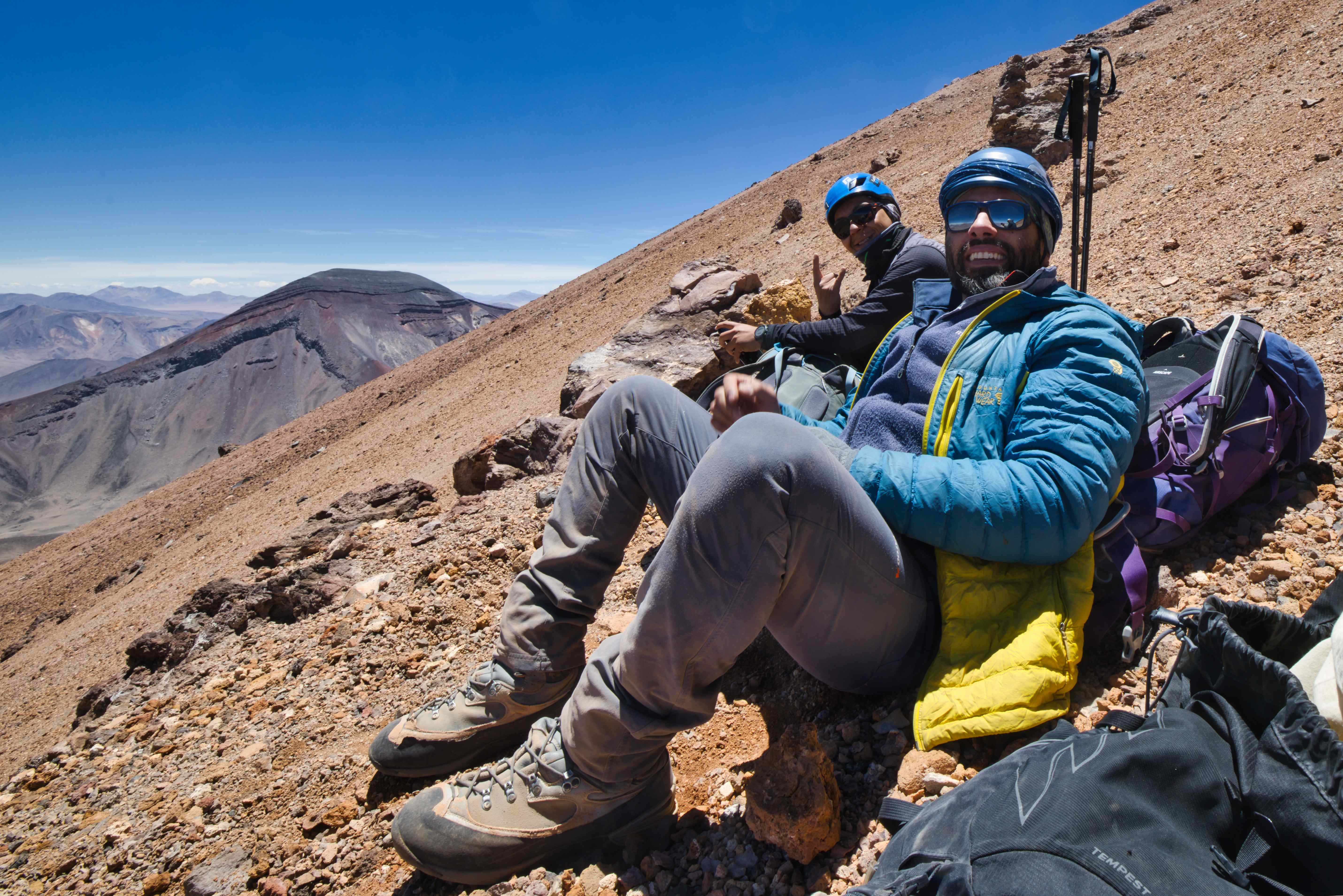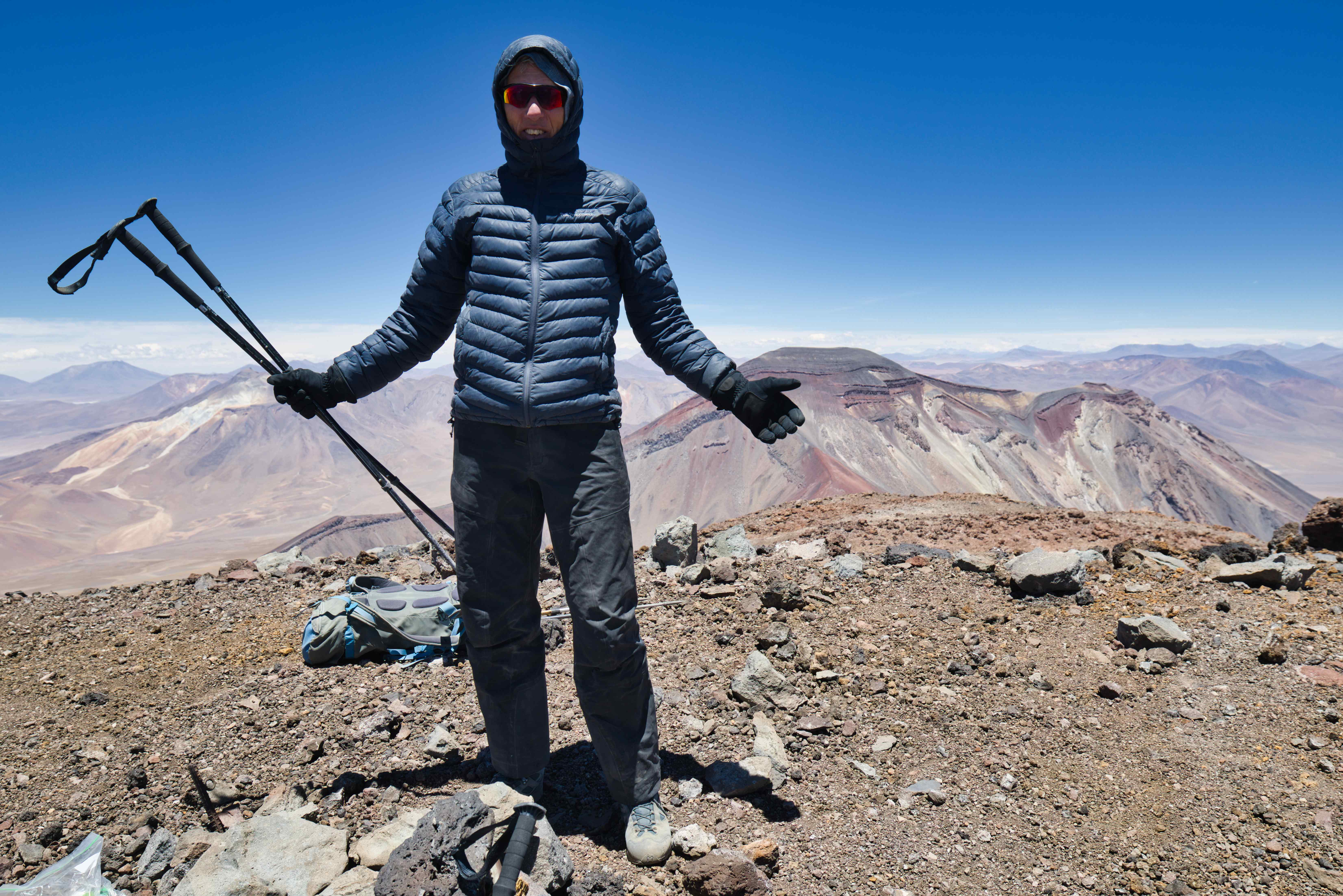 I planned to summit this volcano during my first trip to San Pedro de Atacama in December 2022, but didn’t have time to do so due to bad weather. So this volcano was high on my list and was therefore also the first I attempted. We stayed in tents at the base of the mountain at 4,600 meters and started climbing the volcano next morning at 4am. The climb took about 6 hours.
