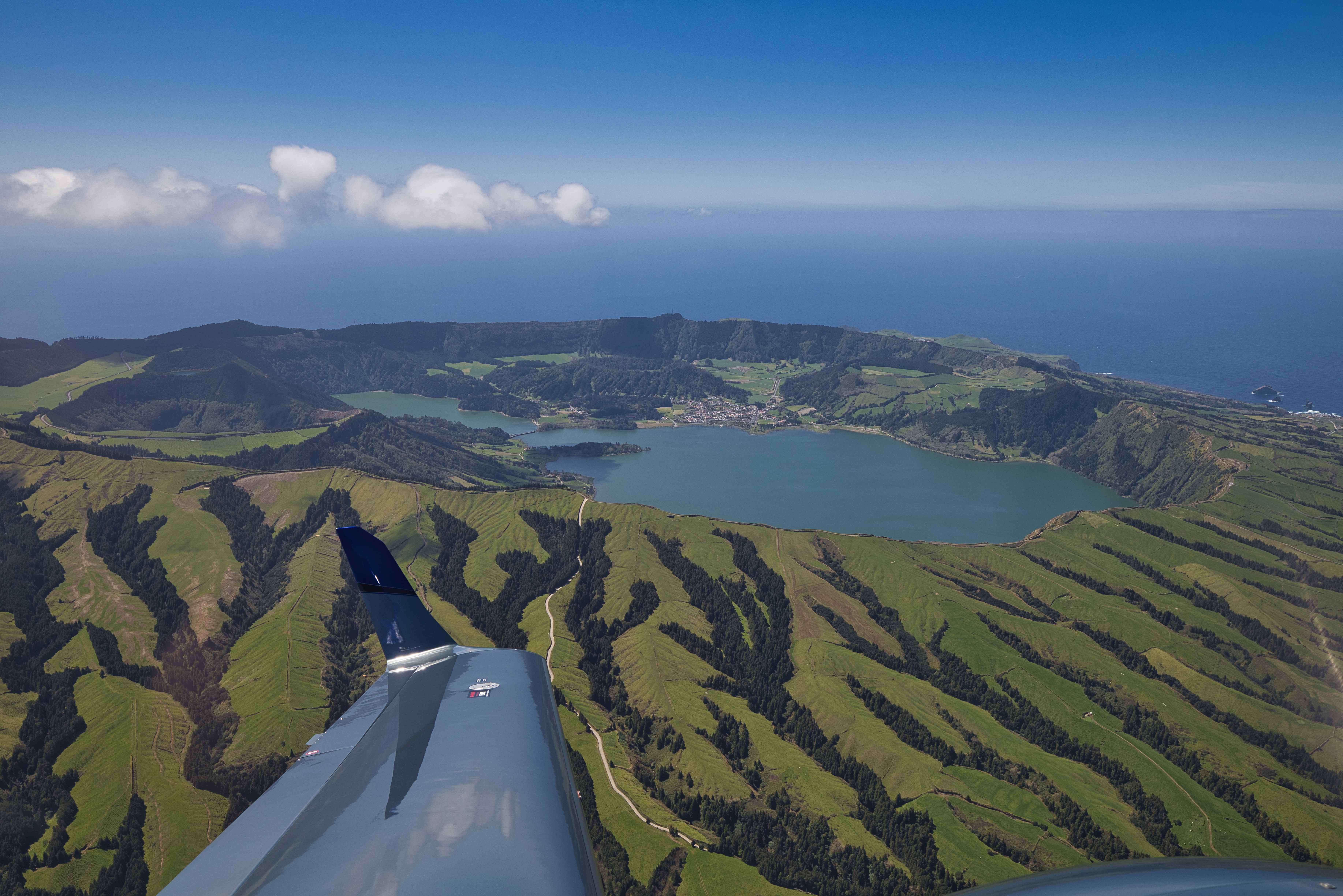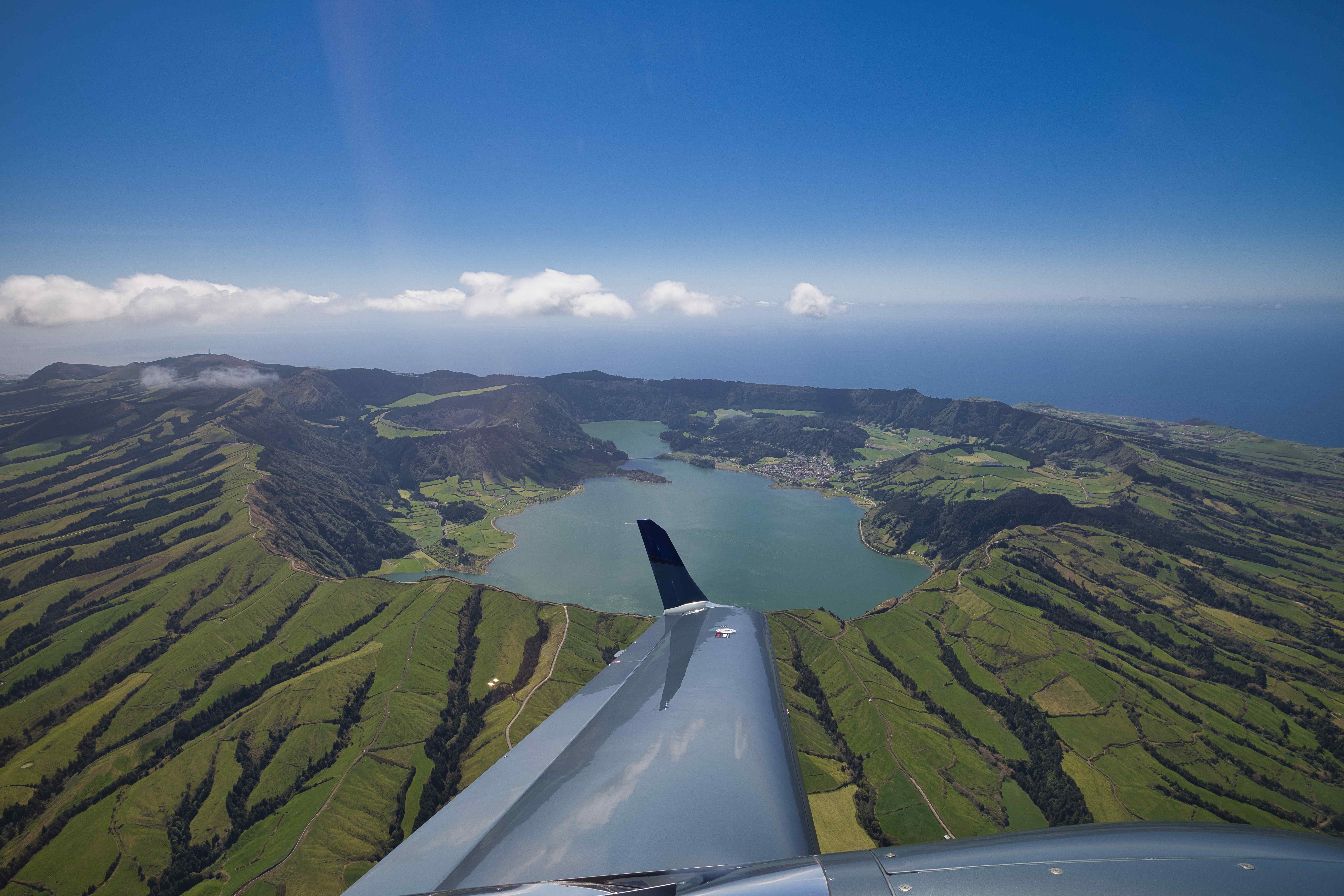 The flight from Porto Santo to São Miguel was another 530 nautical miles (980 km) over the Atlantic Ocean. Before landing I did a flightseeing tour around Sete Cidades, the huge crater on the western end of the island.