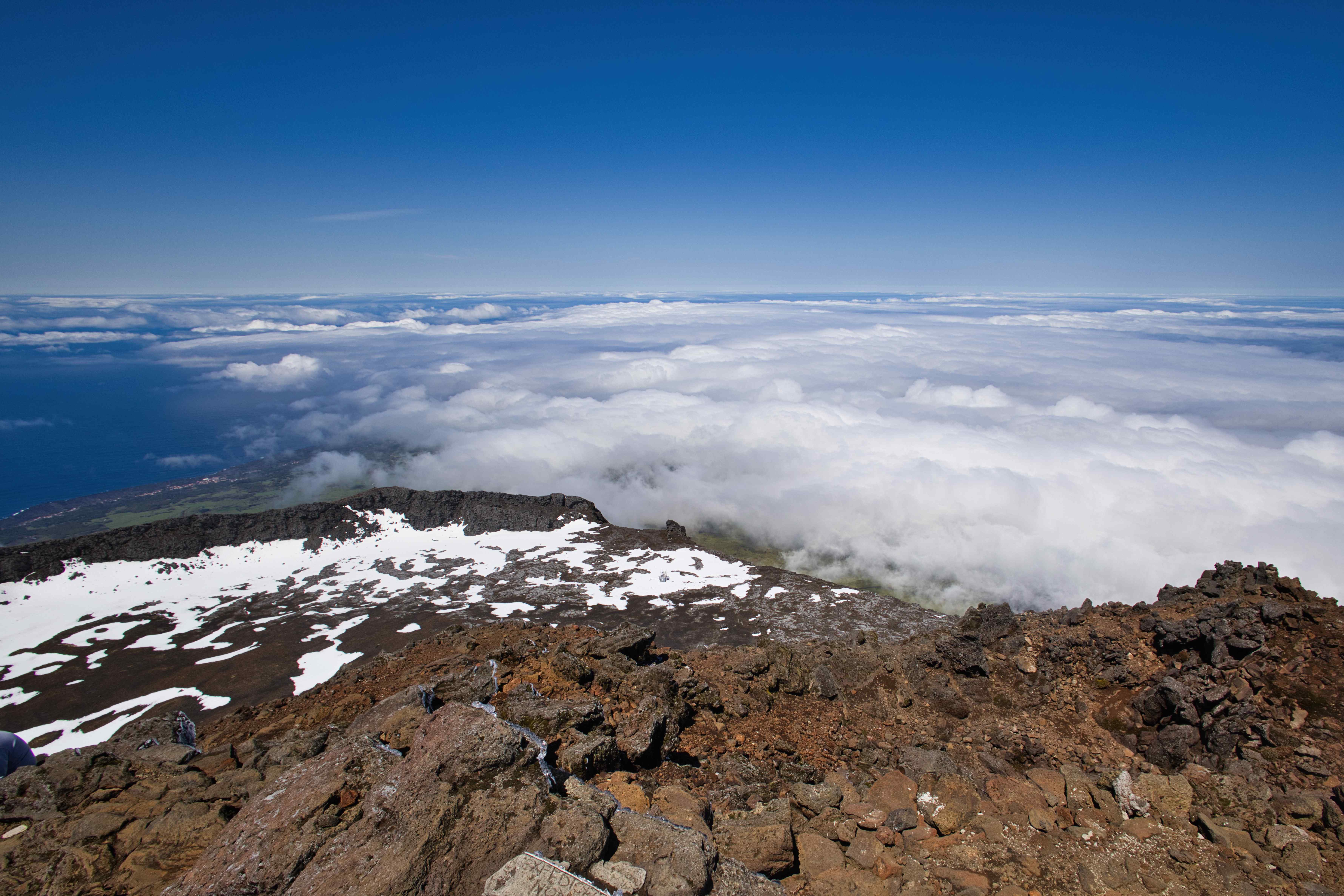 Next day the weather was overcast but just as we got to the Mount Pico trailhead at Casa da Montanha, we got above the clouds. And the clouds stayed low for the whole day so we had the most perfect weather for climbing the volcano. We reached the summit after four hours, what a fantastic climb!