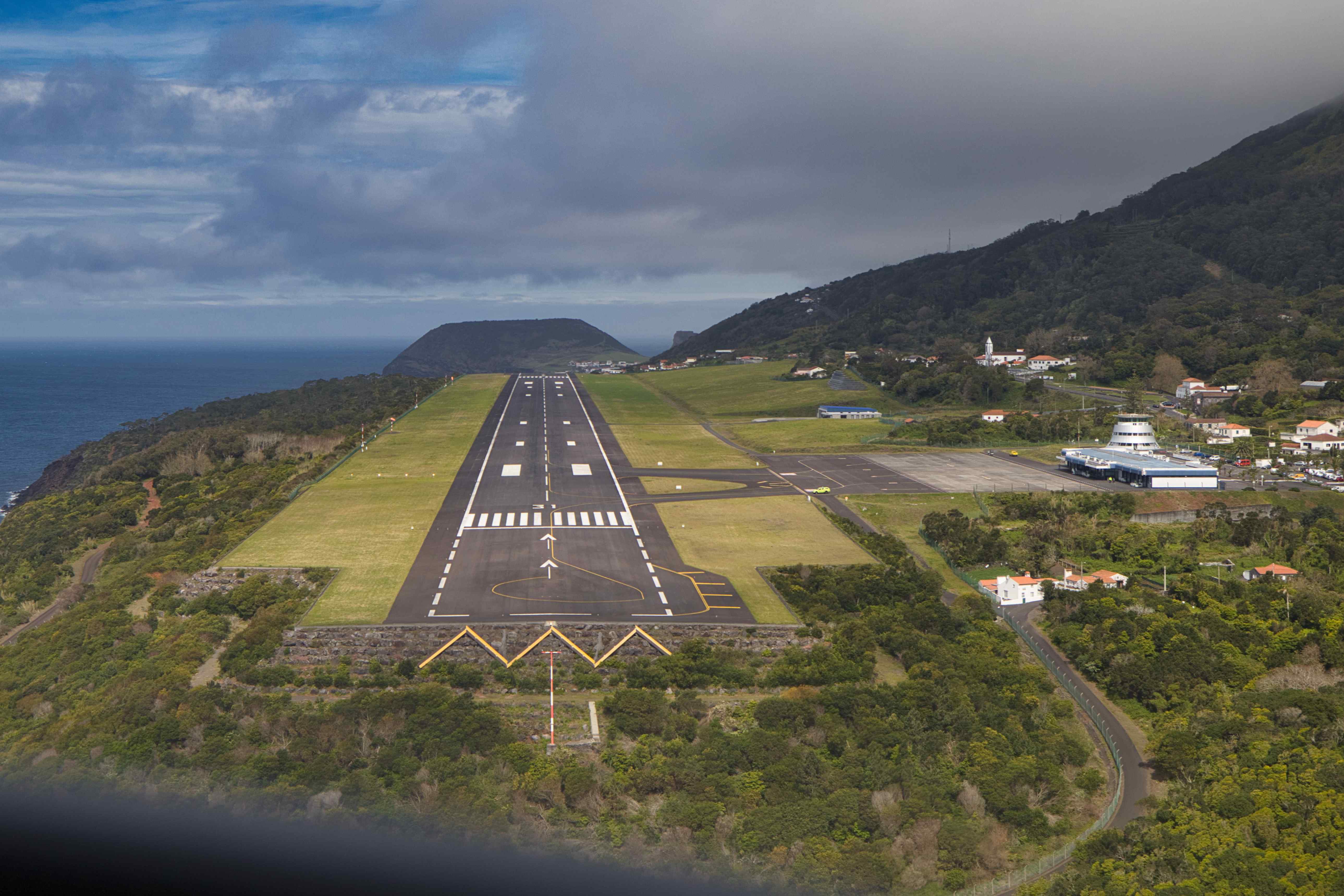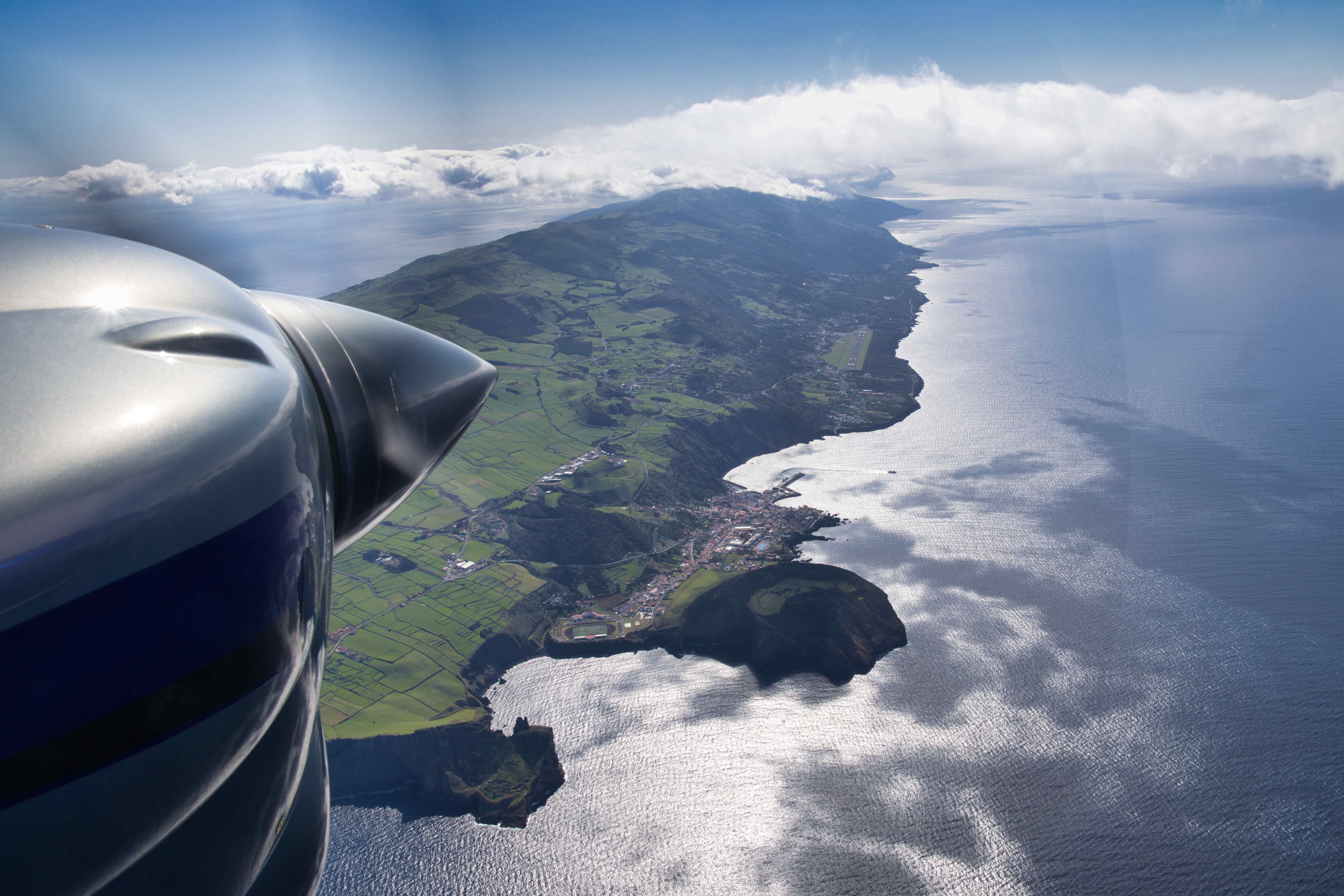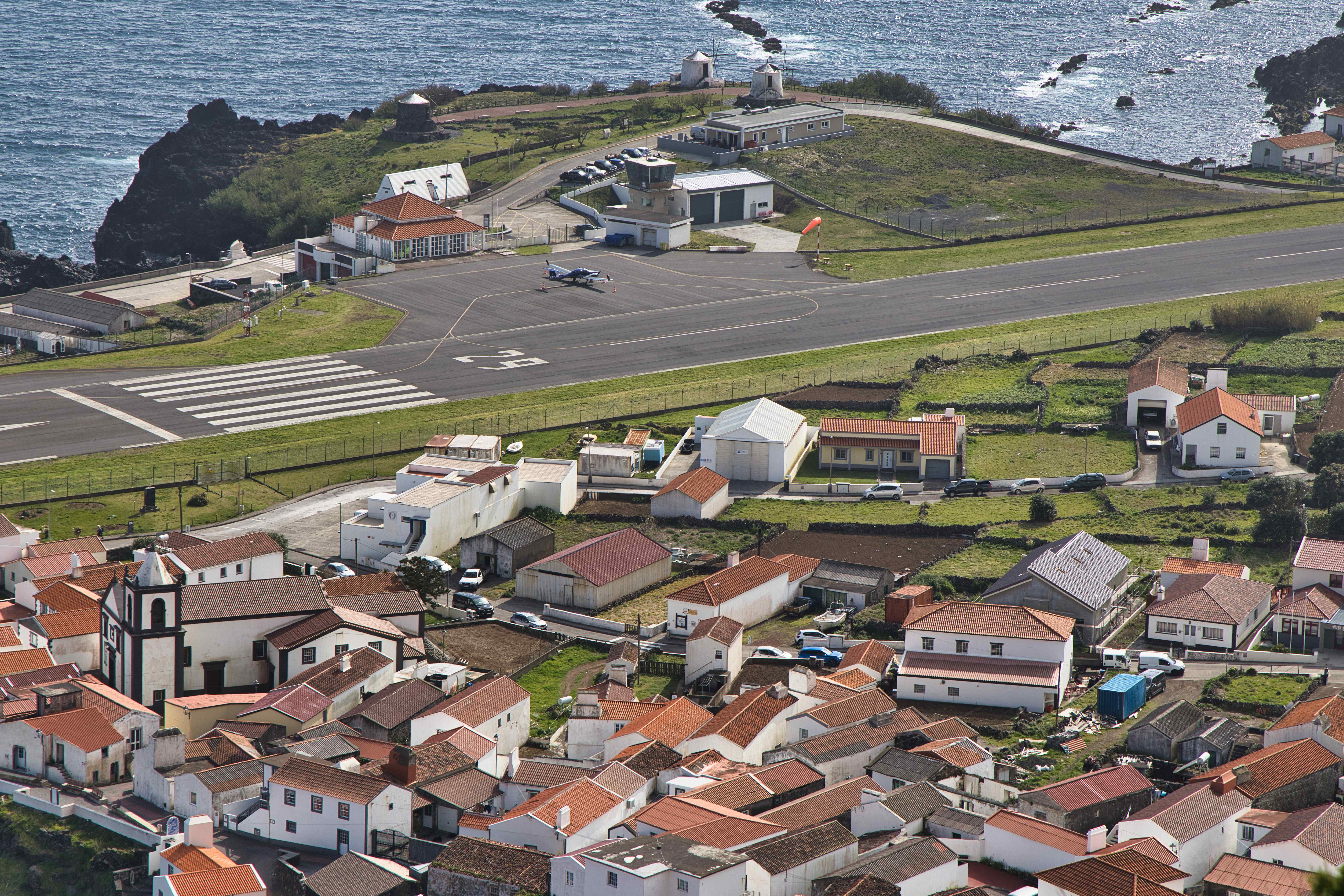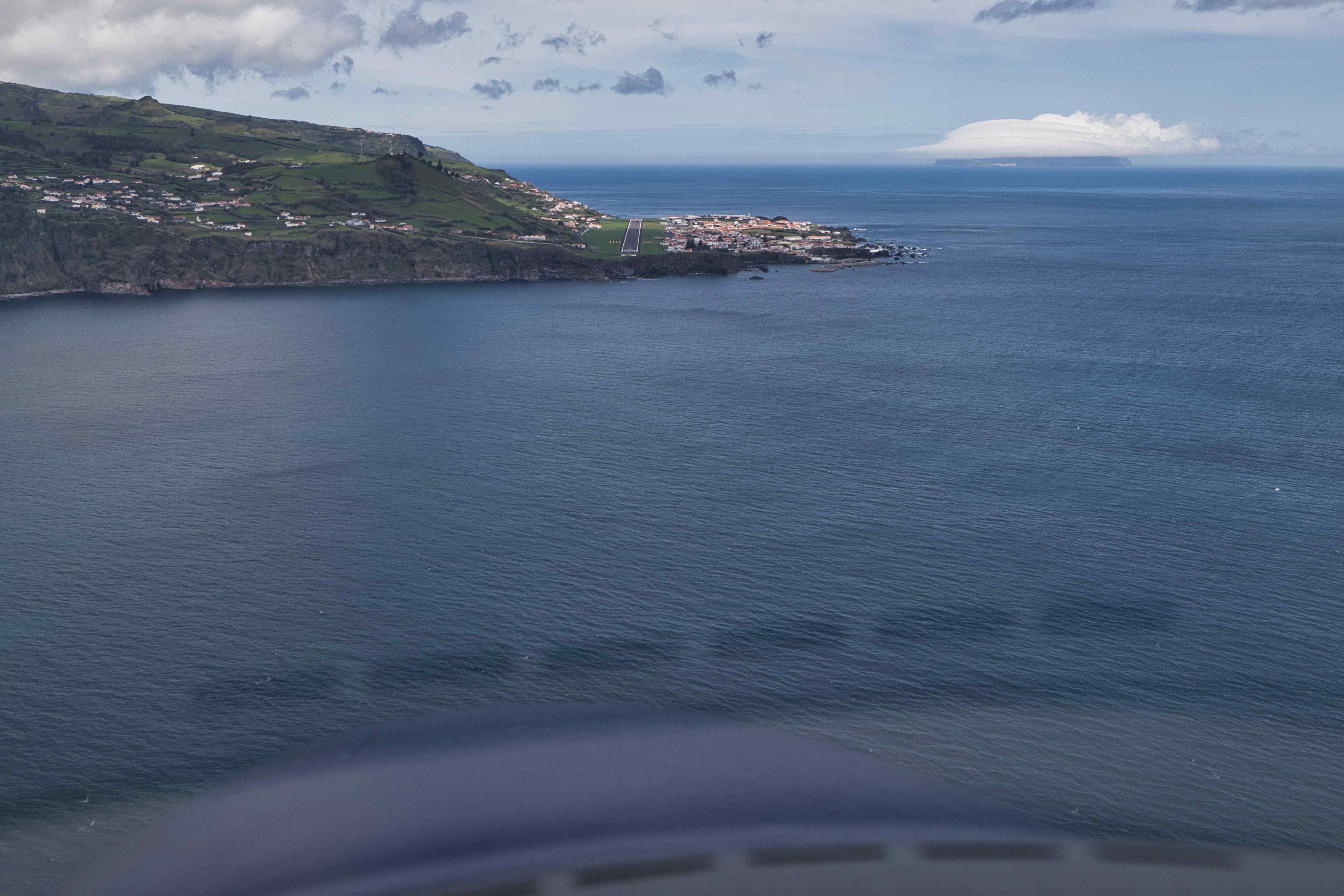 Some pictures from our flight from Faial to the smallest of the Azores, Corvo (LPCR). With a low pass over the airport on Flores (LPFL). The apron on Corvo only has space for one airplane at a time, so we could not land before 13:30 after the last commercial flight, and we had to leave again the next day before 10:00 before the first commercial flight.