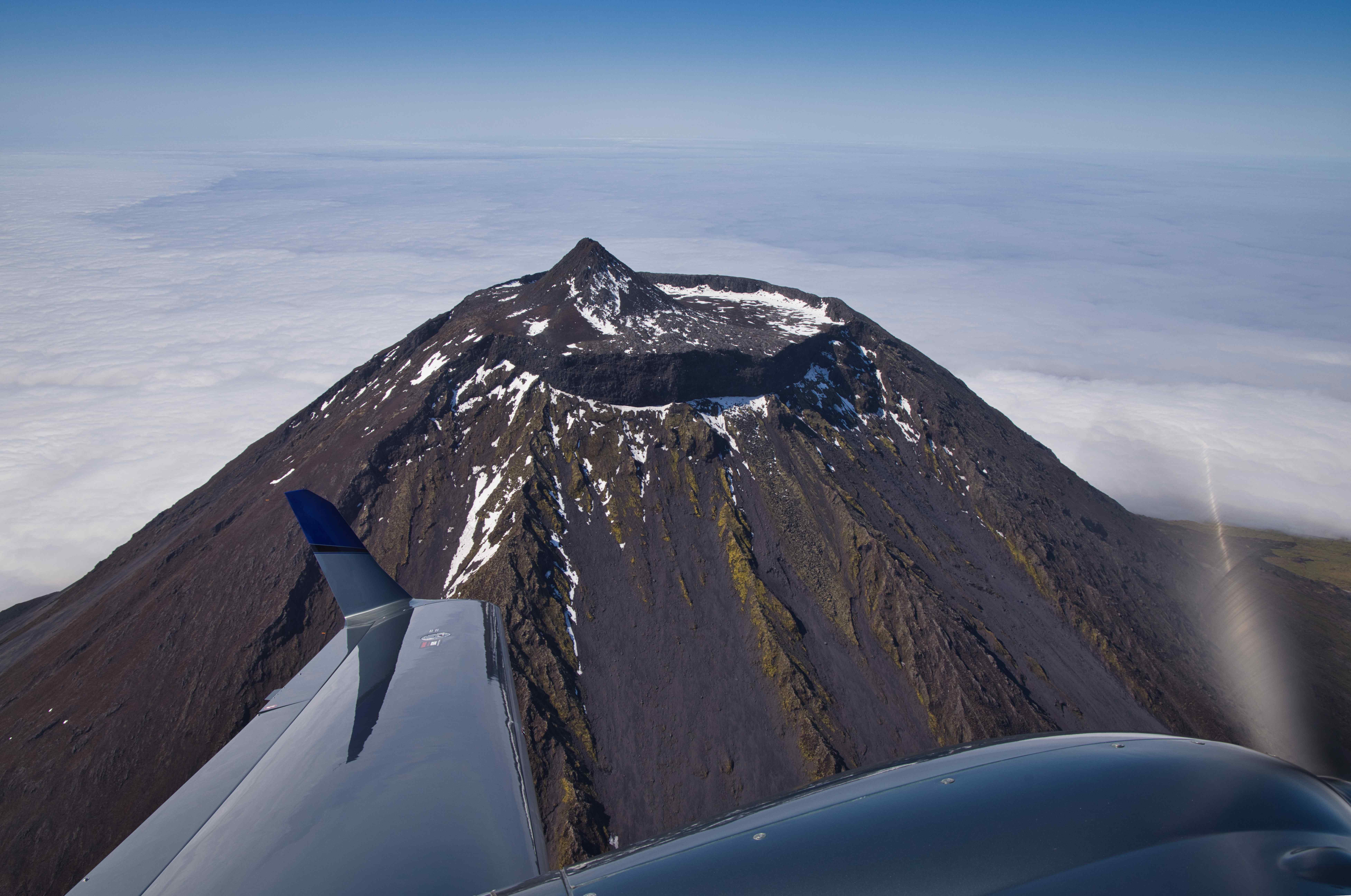 The flight to Pico Island only took around ten minutes in marginal VFR. Upon landing we rented a small car for two days and drove up to Mount Pico base camp to check out the trailhead for climbing the volcano. Lots of low clouds around the mountain so we were quite unsure about our attempt to summit the volcano the following day.