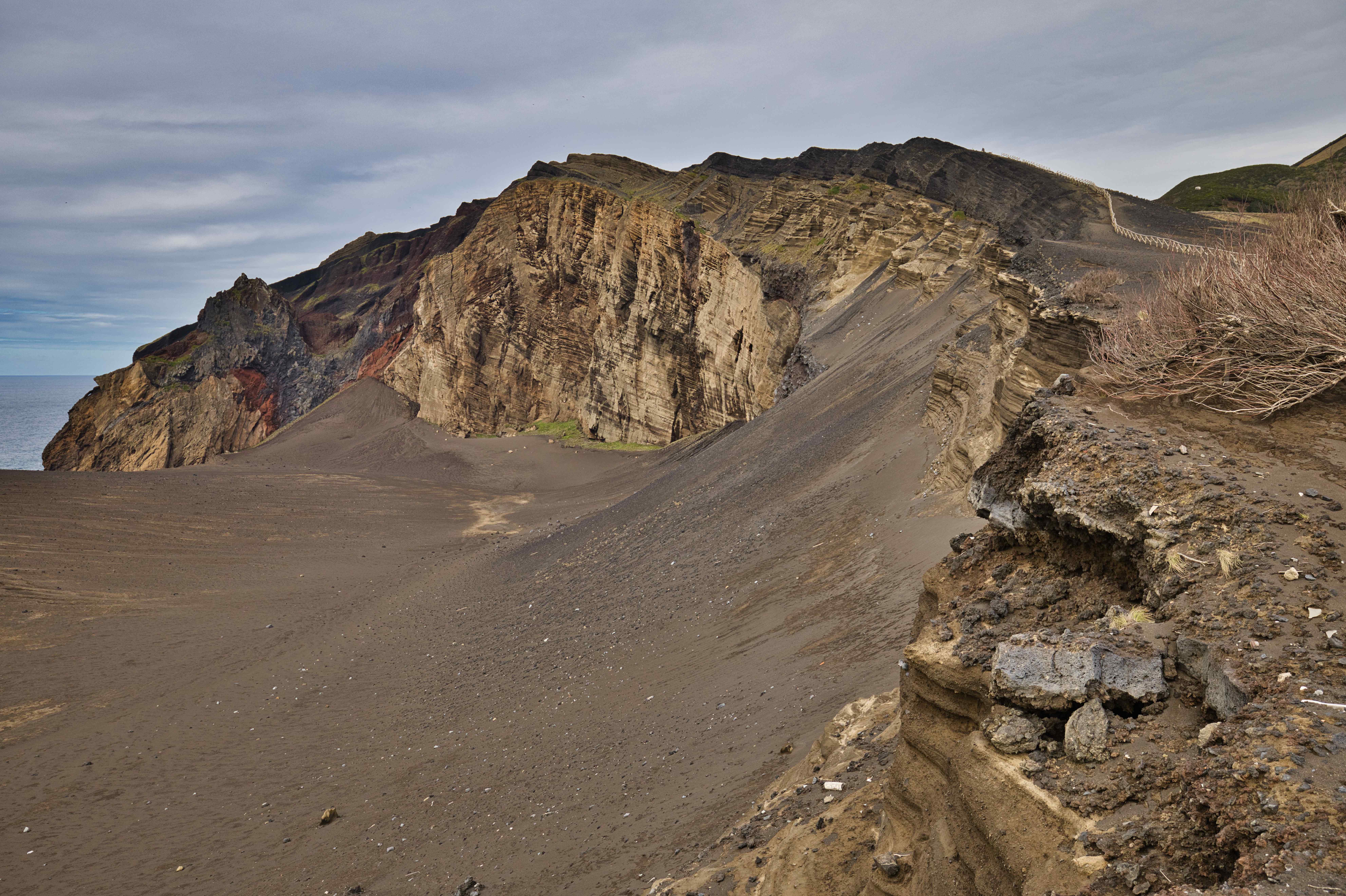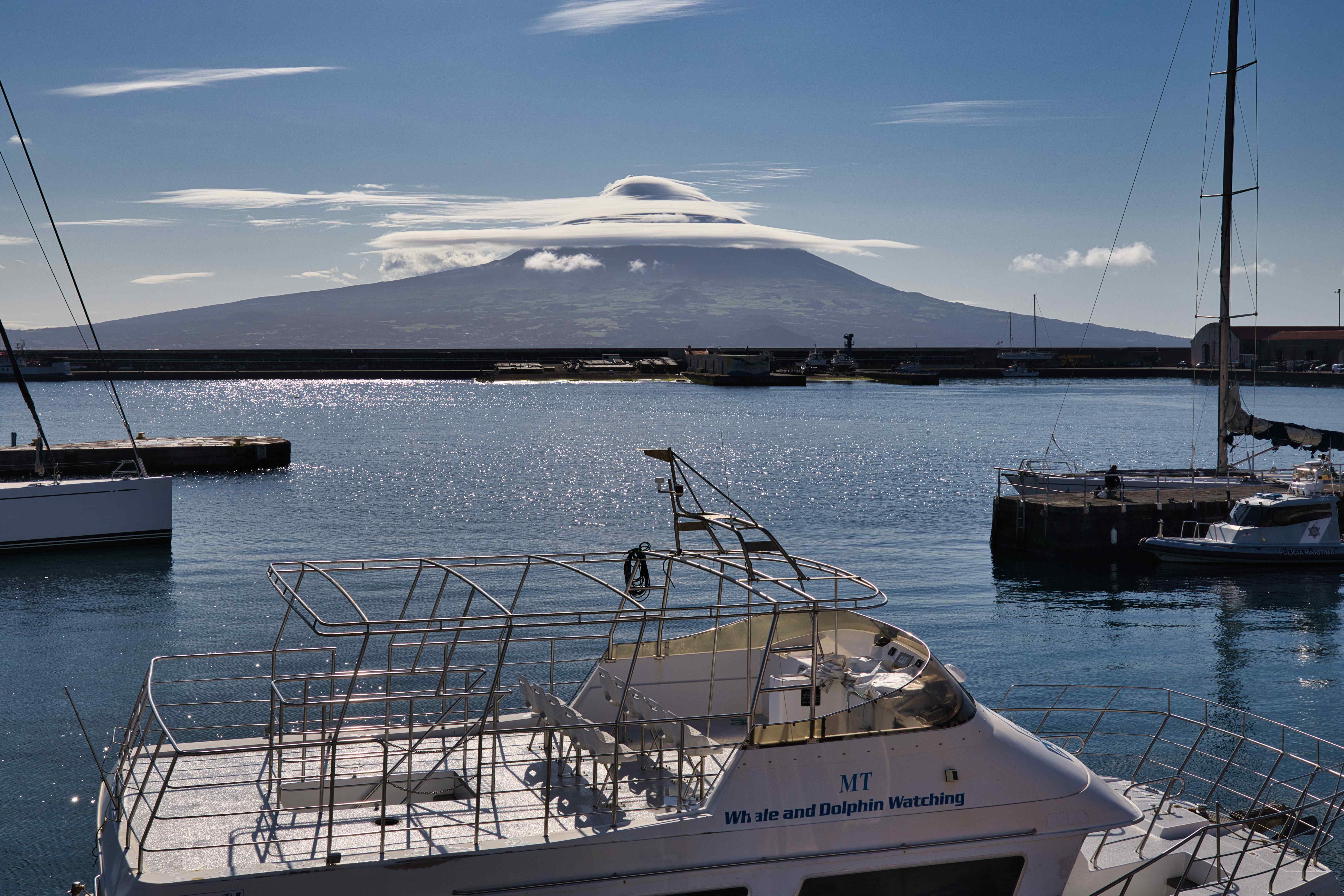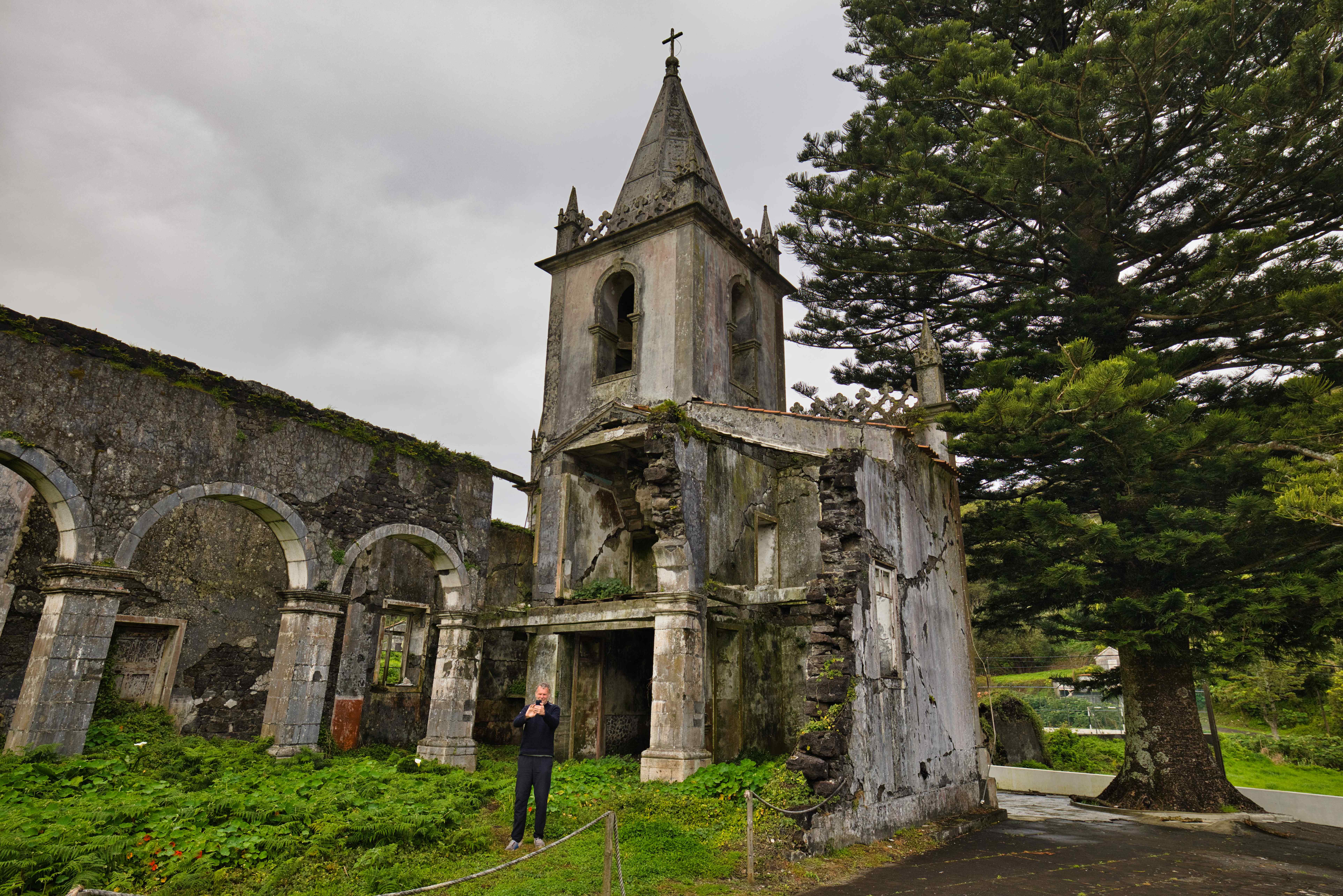 Two nights on Faial. The full day was spent doing sightseeing and hiking. We hiked all the way around the central crater Caldeira do Cabeço Gordo, we visited Ribeirinha Lighthouse which was severely destroyed by an earthquake in 1998. And nearby Igreja de São Mateus, also destroyed by earthquakes. And finally Vulcão dos Capelinhos on the westernmost tip of Faial.