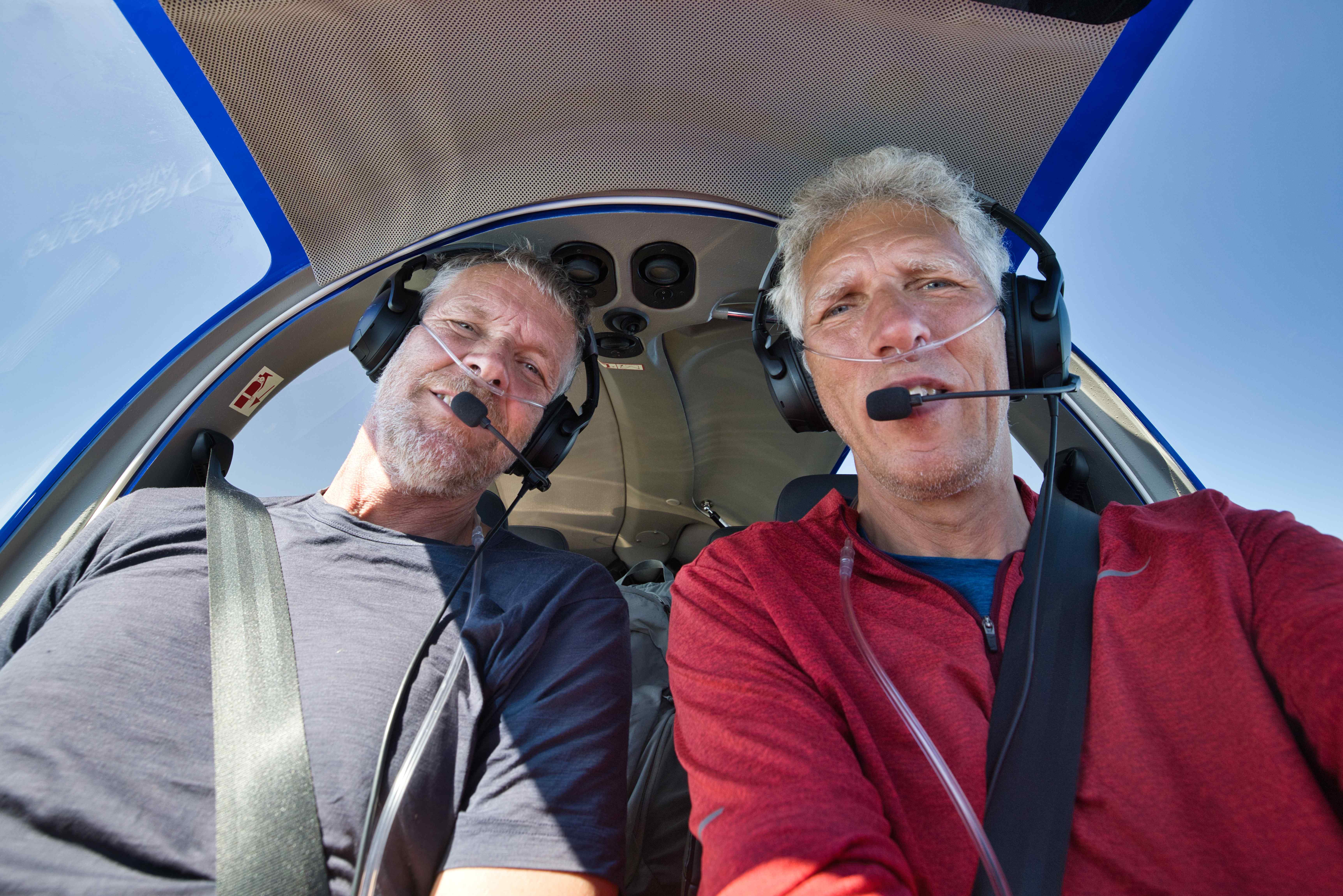 - Oxygen for the entire trip. Most of the trips was done below FL100 (10,000 feet), but for the long flights over water I flew at up to FL180 (18,000 feet) depending on the wind. My oxygen bottle is a large, but lightweight 48 cb. ft. carbon fibre bottle. And my oxygen system is a Portable Pulse Demand System for two people from MH Oxygen. This oxygen system can last for up to 15 hours for two persons flying at FL180 (18,000 feet).